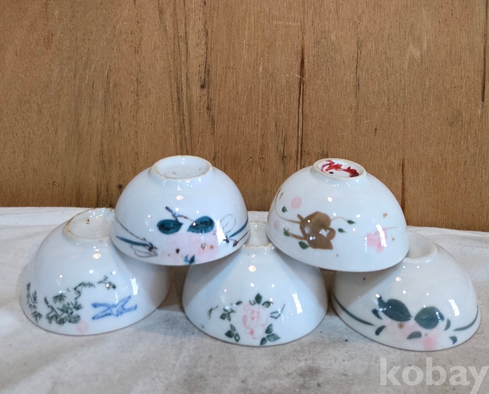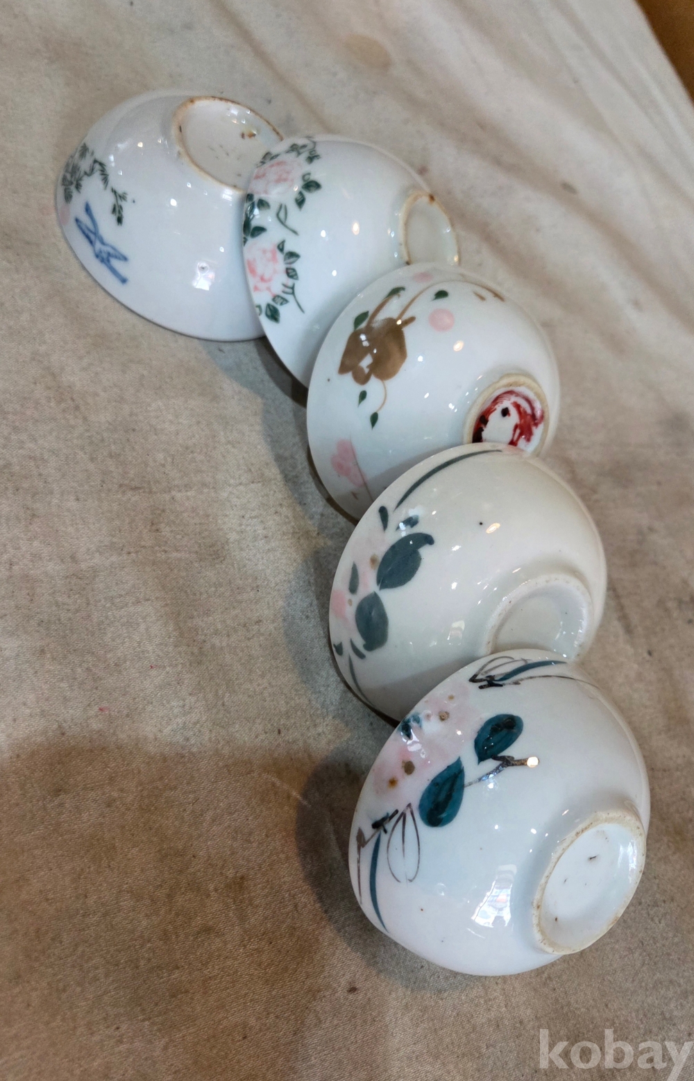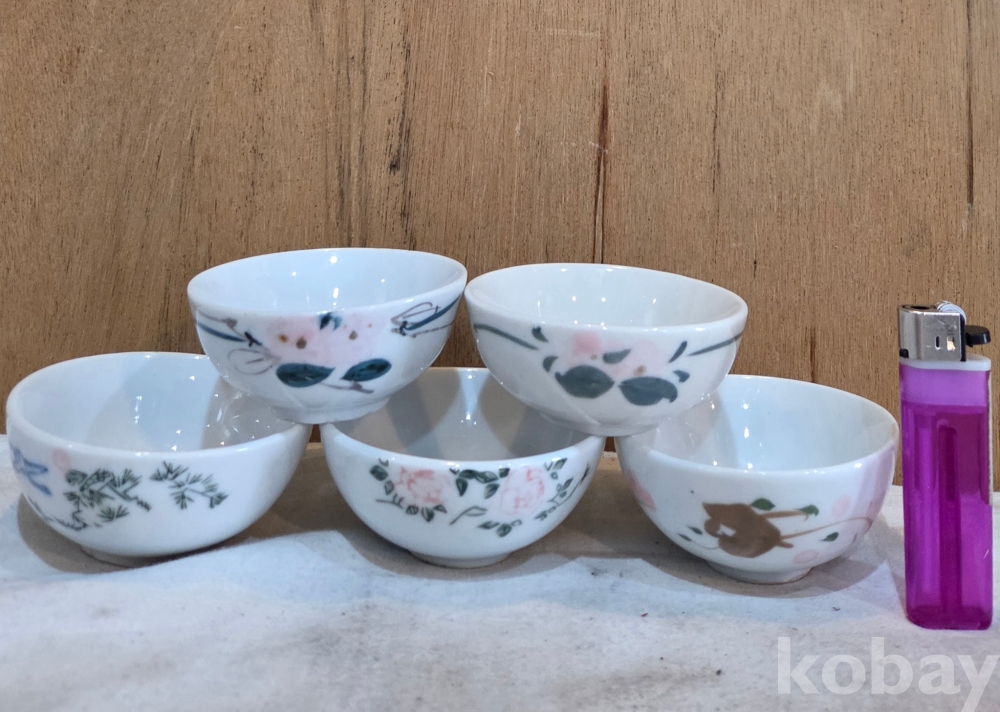 외사기 꽃잔 / 한모금잔 / 깍지잔 5점