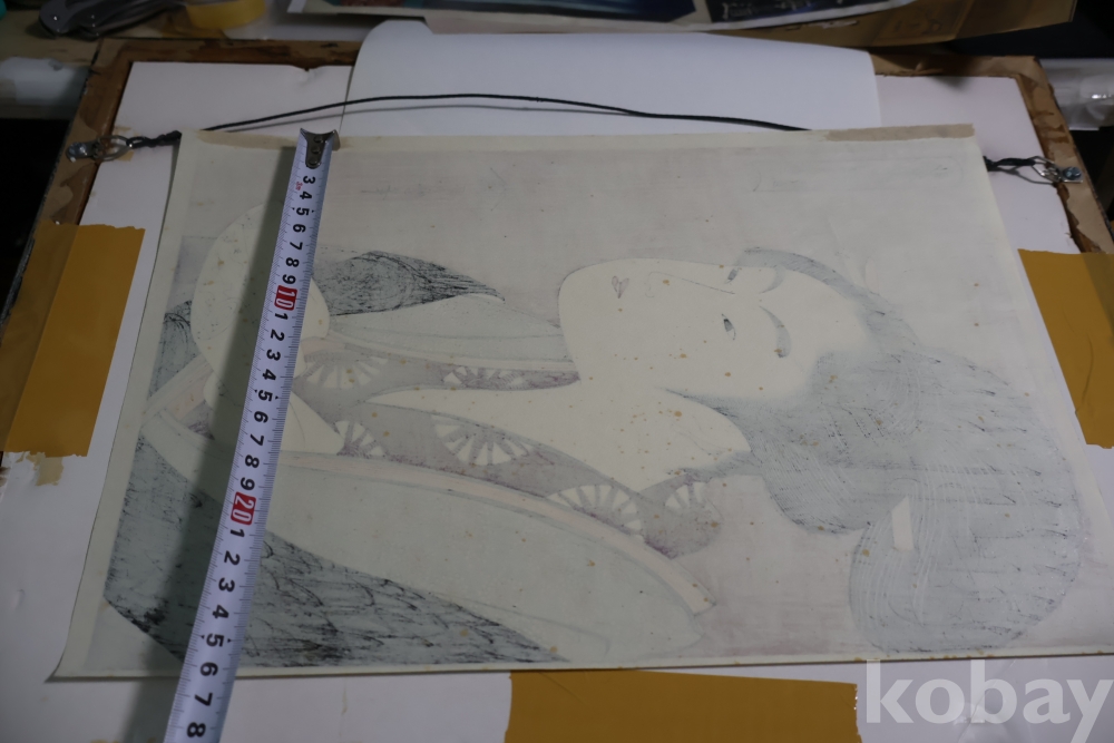 소화기의 복각 목판화 우타마로 임니다 멋진 디자인 마이카 처리 등등 소화기의 명품 임니다 세월의 반점이 보임니다 사진 참조 하세요