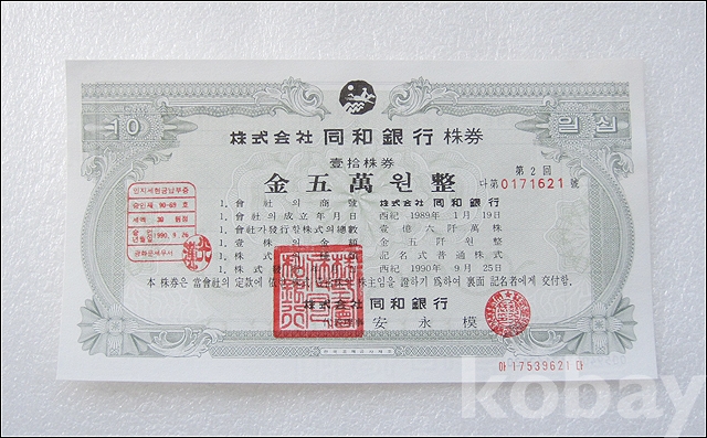 동화은행 실물 종이 주식