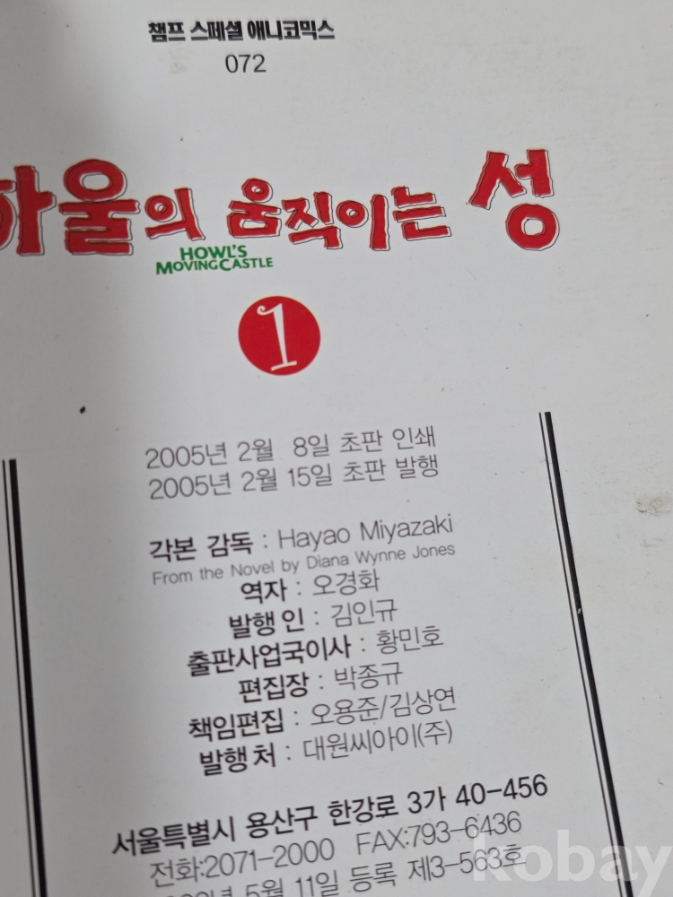 (((만화))) 하울의 움직이는 성 (HOWL'S MOVING CASTRE) ) 1 ~4권 (완관)(2005년 1판 1쇄)