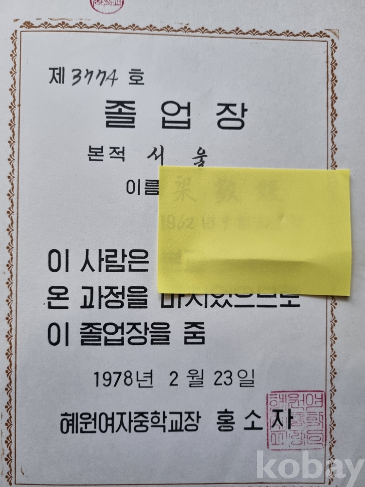 원소유자분의 졸업장도 같이 들어 있습니다.