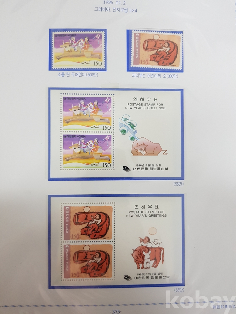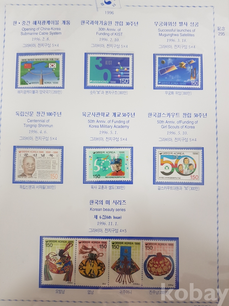- 1996년~1999년 한국우표앨범 9번 우표책 앨범해체분 / 한국우표문화협회