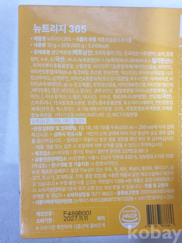 {천원경매} Y-4-2083 인큐텐 뉴트리지 365 - 체중조절용 조제식품 (미개봉)