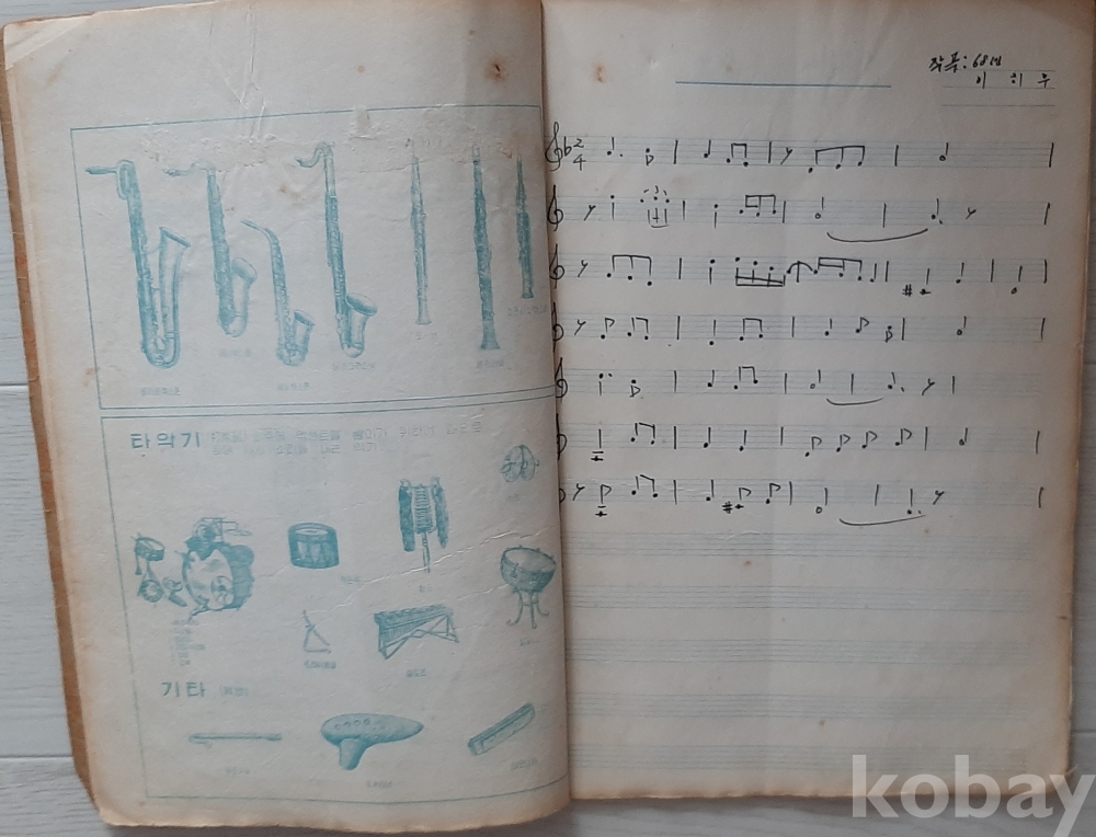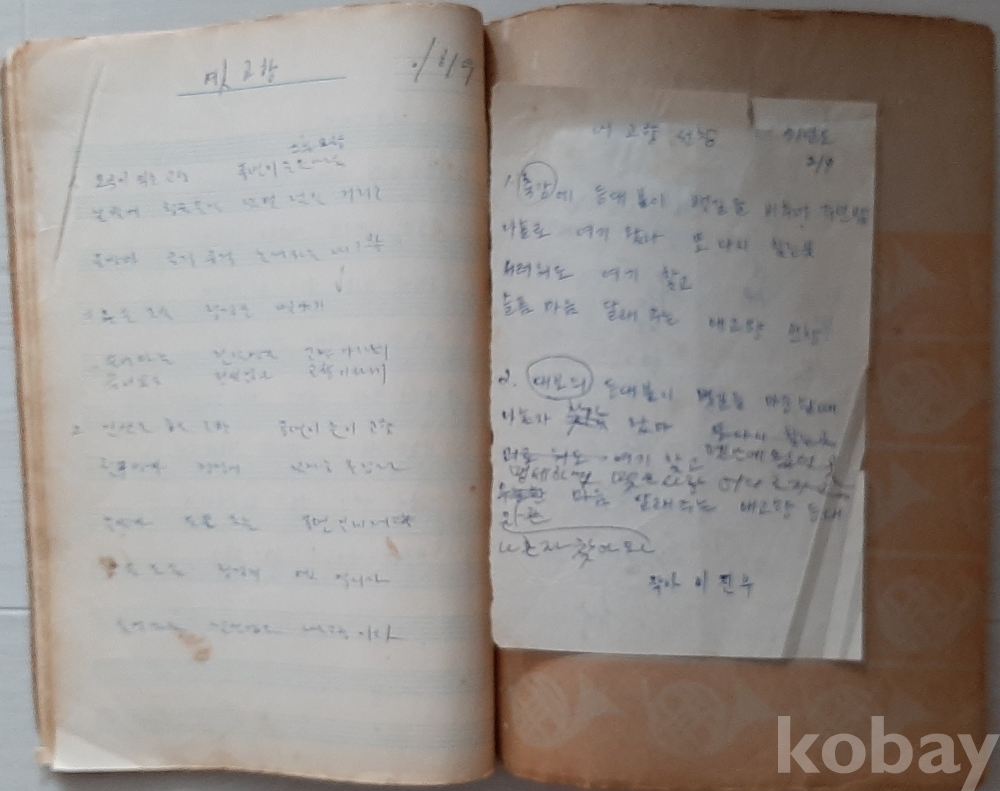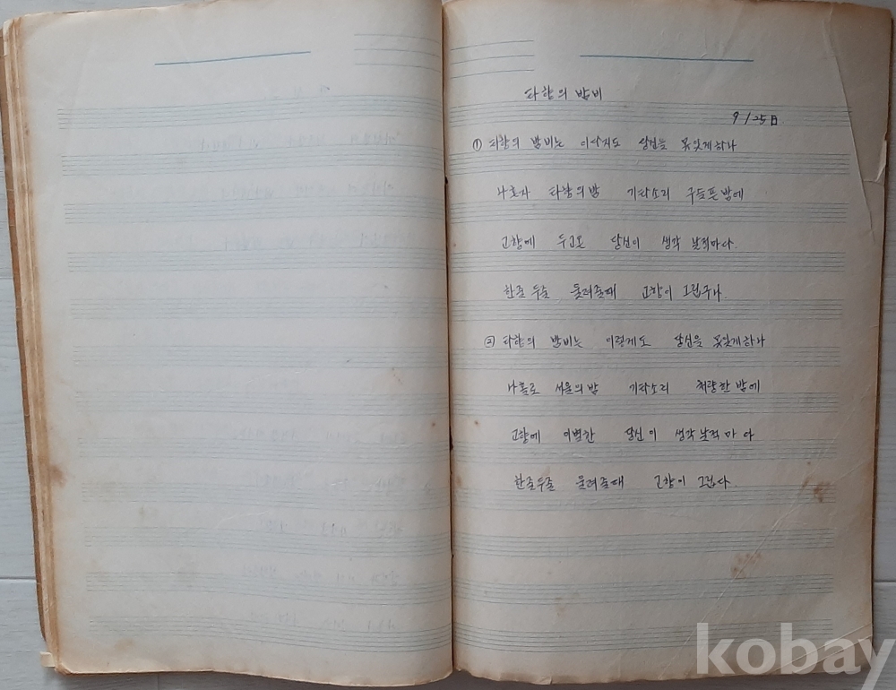 이희우 작사자의 작곡 작사 친필 노트, 반품불가, 반품시 반품비용 구매자부담조건 판매, 사이즈는 정확하지 않음