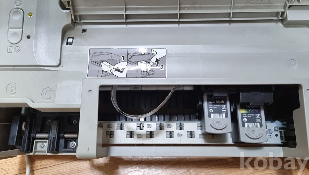 구성품: 본체, 전원 케이블, USB 연결 케이블, 새 잉크(PG-40 Black) 포함.
