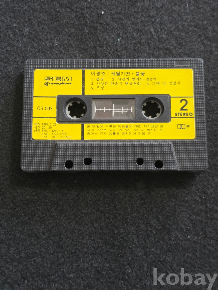 (((카세트테이프))) 이광조 * 세월이가면/불꽃  카세트테이프 (성음/1987년)      (자켓없는 알테이프)