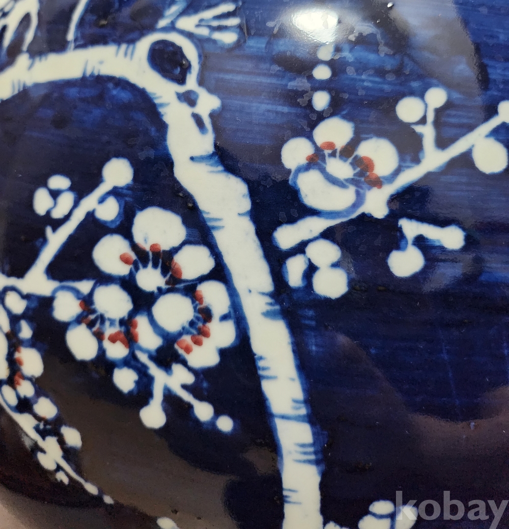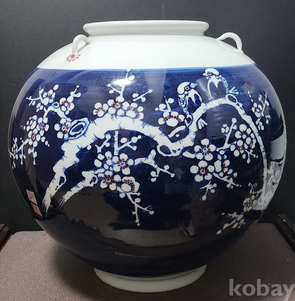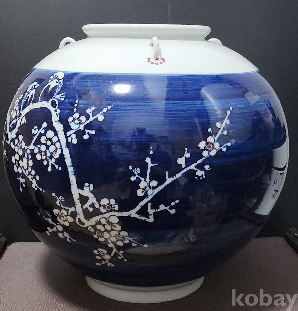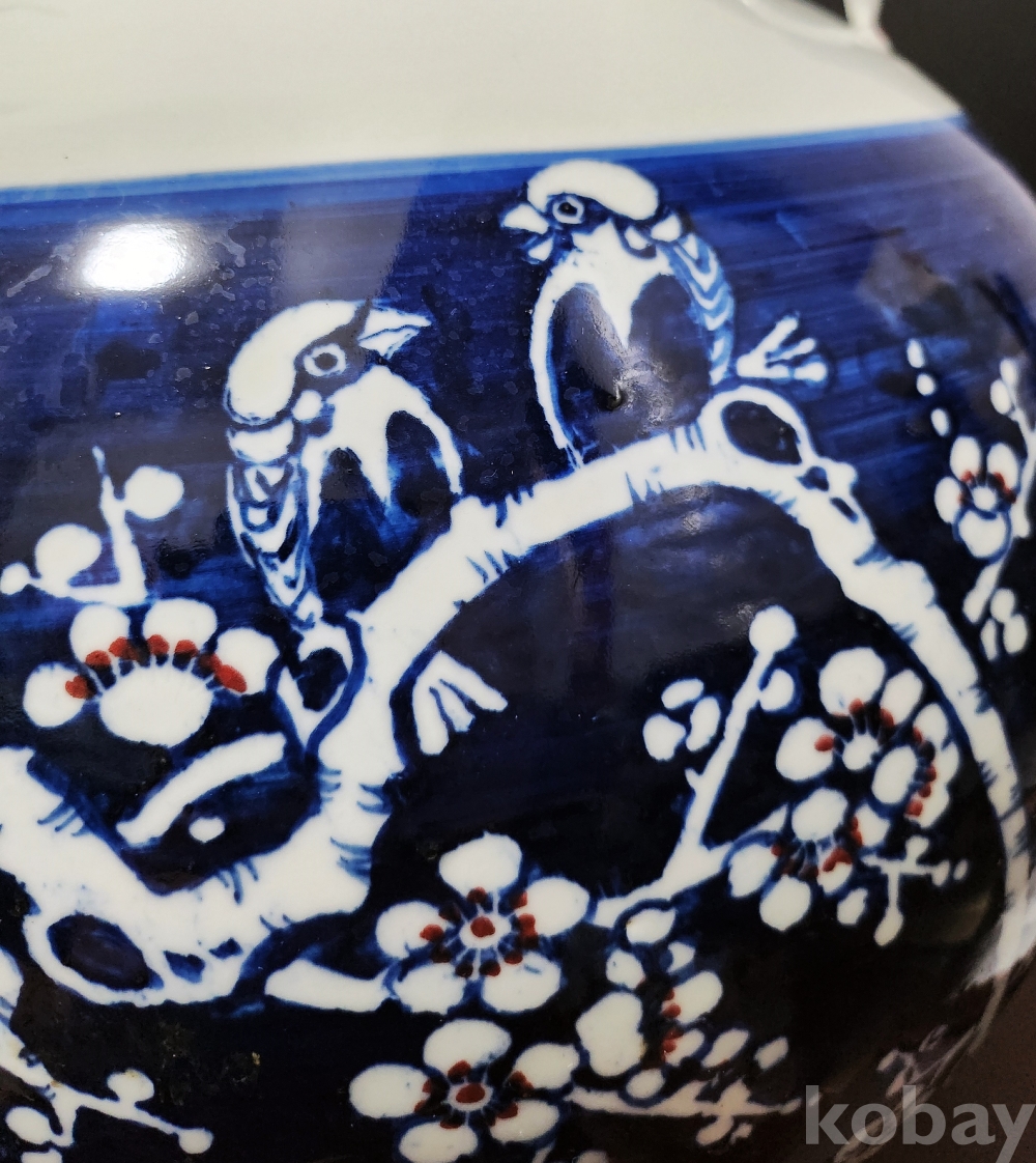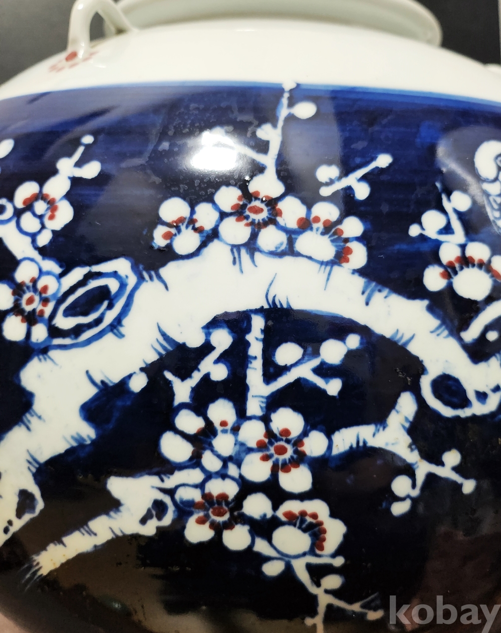 백자청화진사 매조도문 양이호 白磁靑華辰砂 梅鳥圖紋 兩耳壺