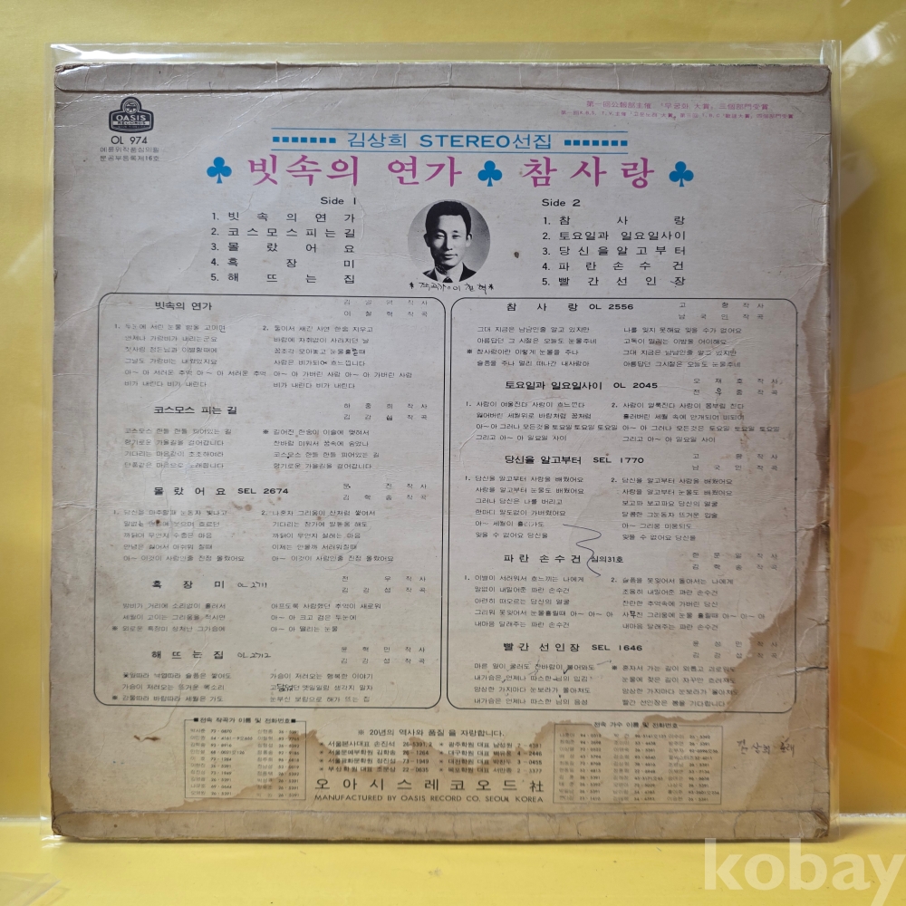 | 자켓상태 | VG : 주름, 접힘, 모서리 찢김 다수 | 음반상태 | EX : 재생에 영향 없는 가벼운 기스 존재 | 발매정보 | 초반 | 가사지여부 | 무 |