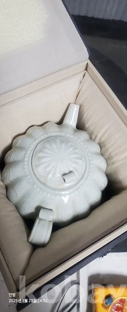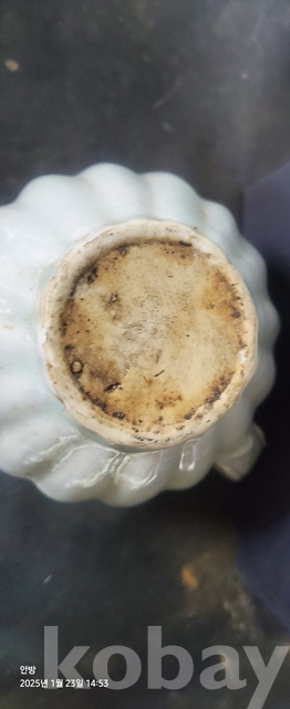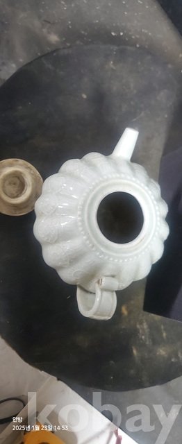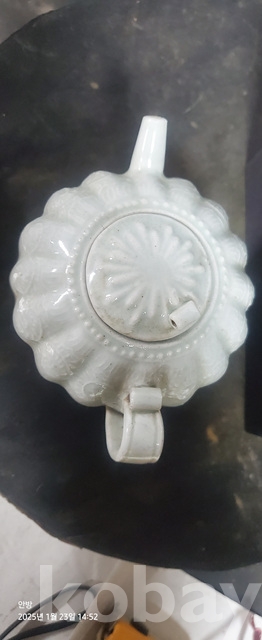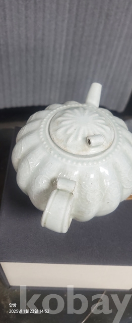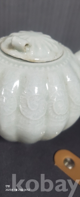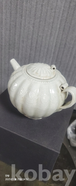 c-160.오래된백자 줄무늬참외형 찻주전자