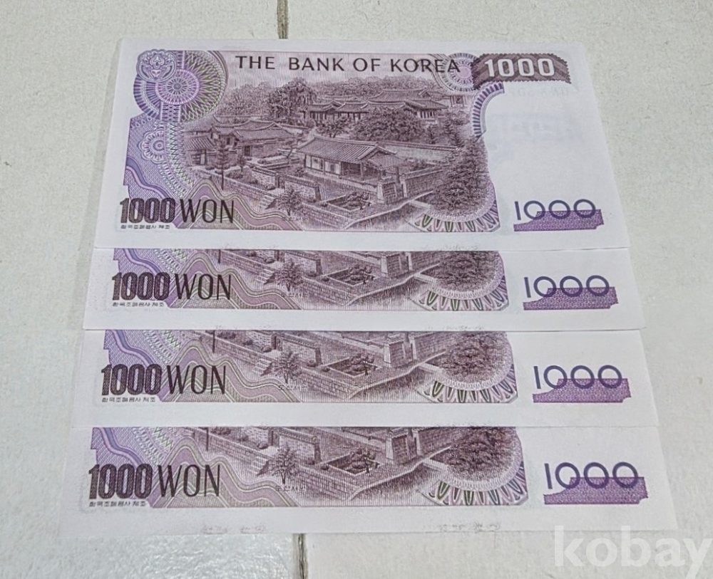 대한민국 2차 천원 양성권 미사용 지폐 4장 경매합니다.. <<천원경매>>