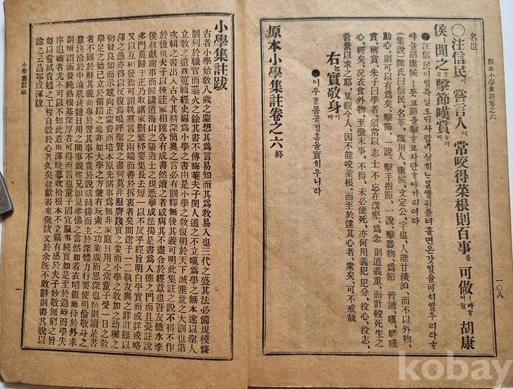 특징: 유학의 입문서인 《소학》에 주석을 붙인 '소학집주'를 바탕으로, 근대식 편집을 거쳐 발행된 책입니다.
