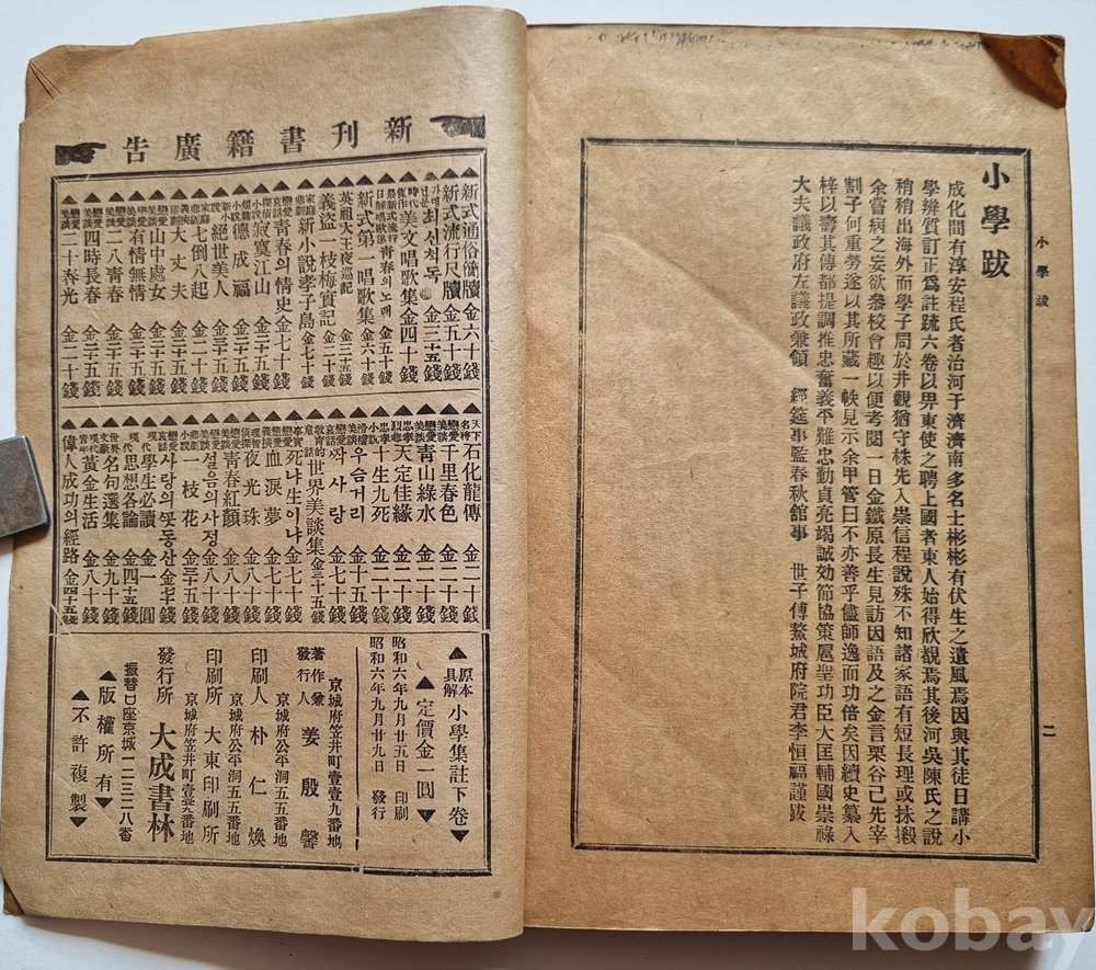 발행일: 昭和 六年 (소화 6년, 1931년) 9월 29일 발행