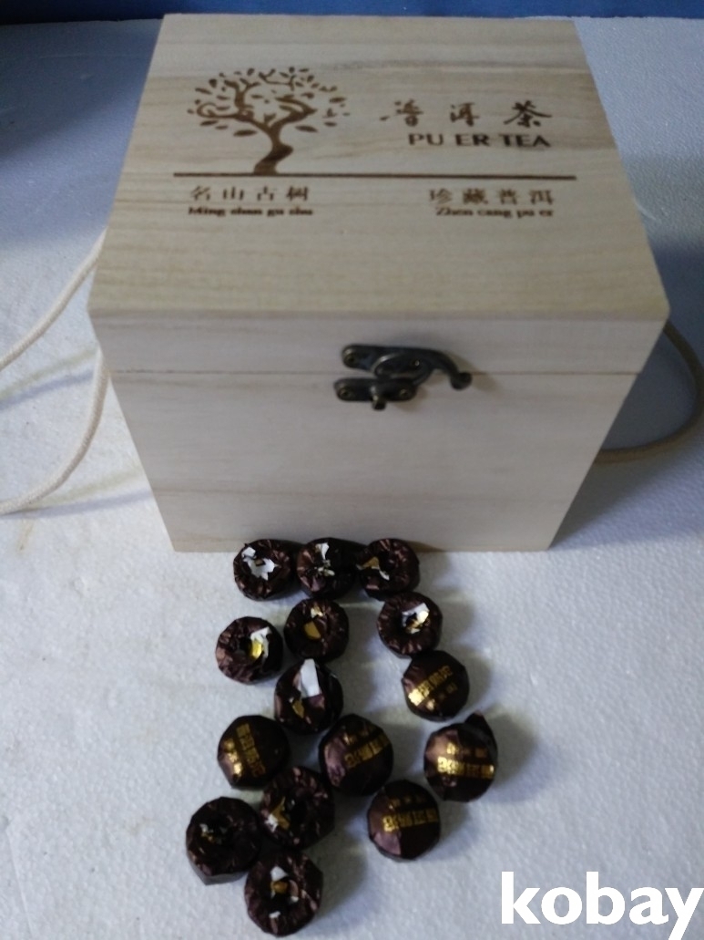 오동나무 박스에 초콜릿 모양의 보이차 입니다.