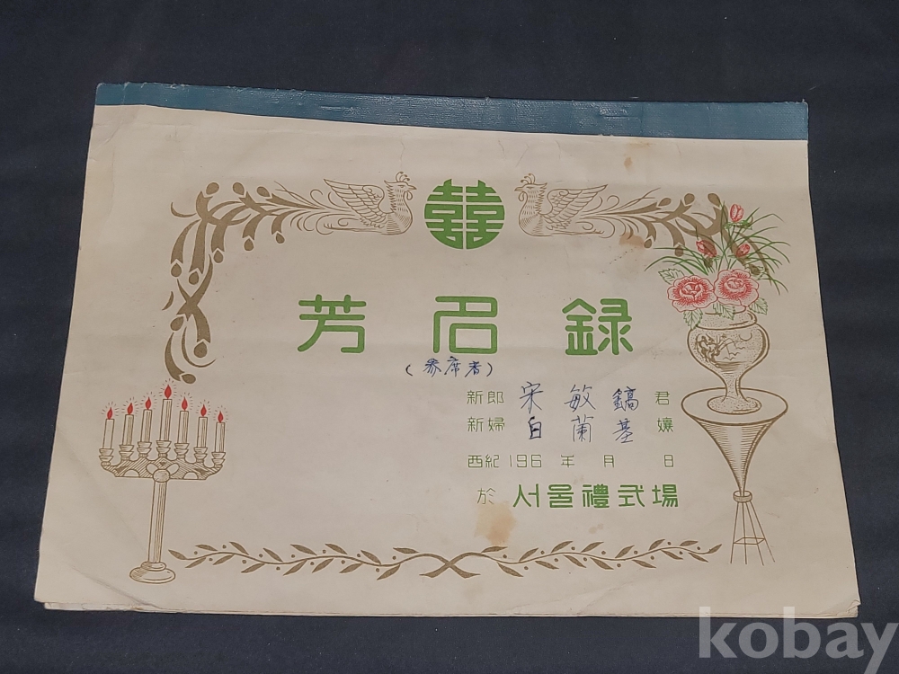 빈티지 1960년대 서울예식장 결혼식 방명록입니다.