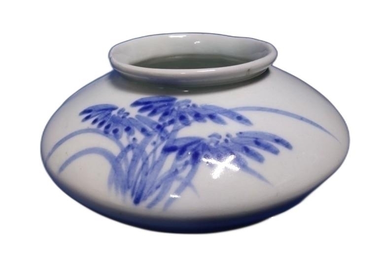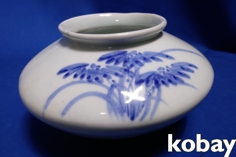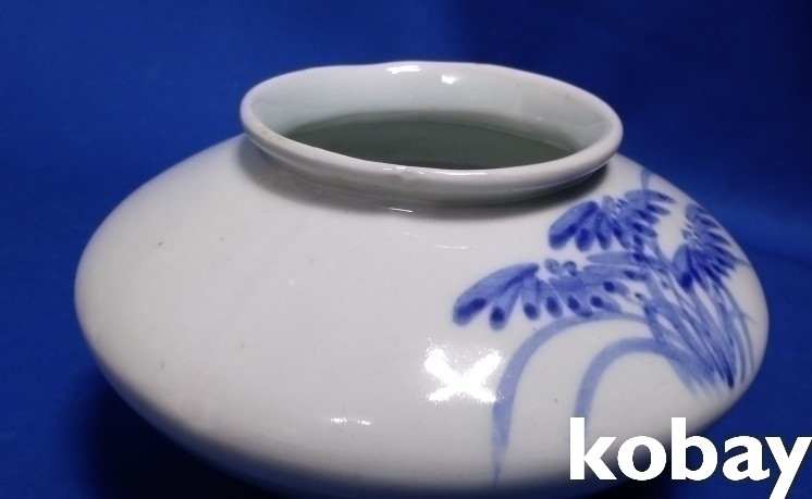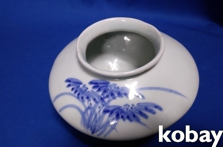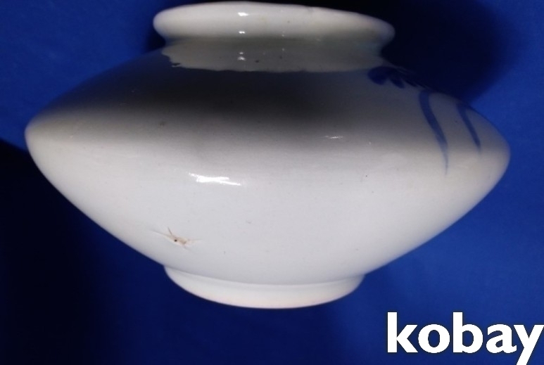 꽃 문양이 있는 바둑알형 백자 입니다.