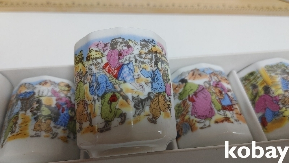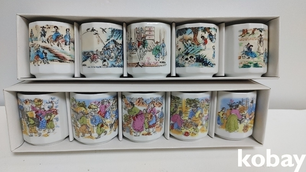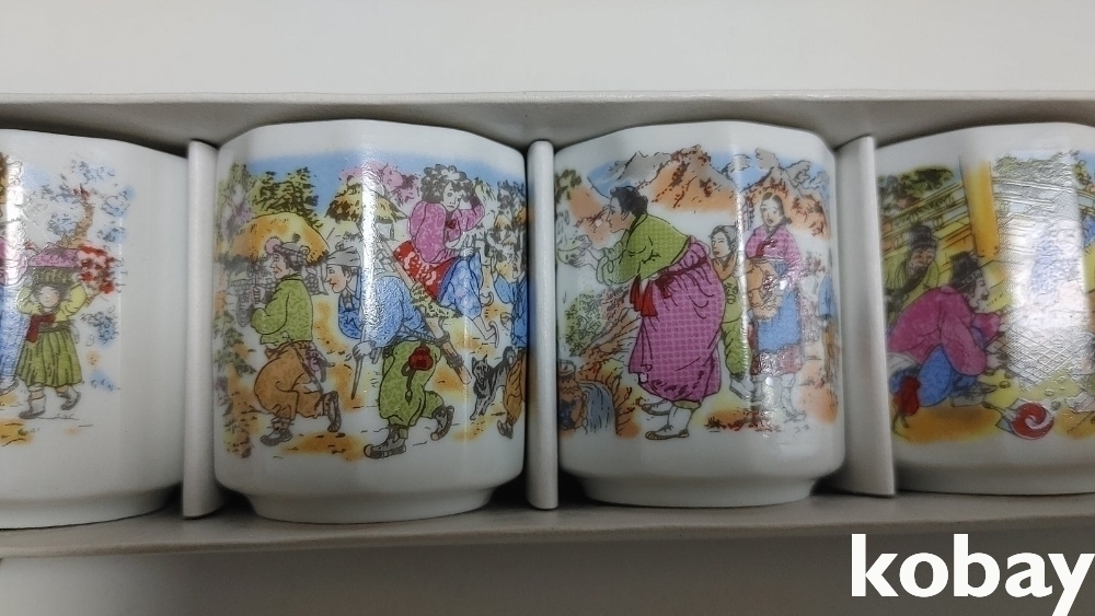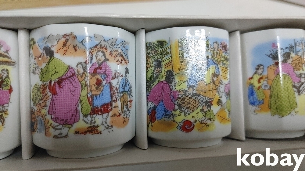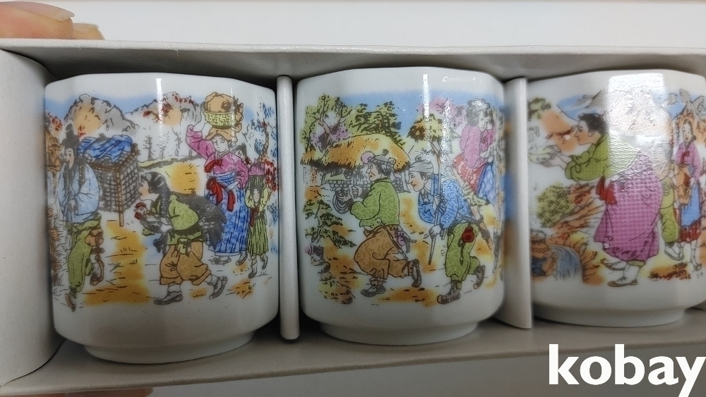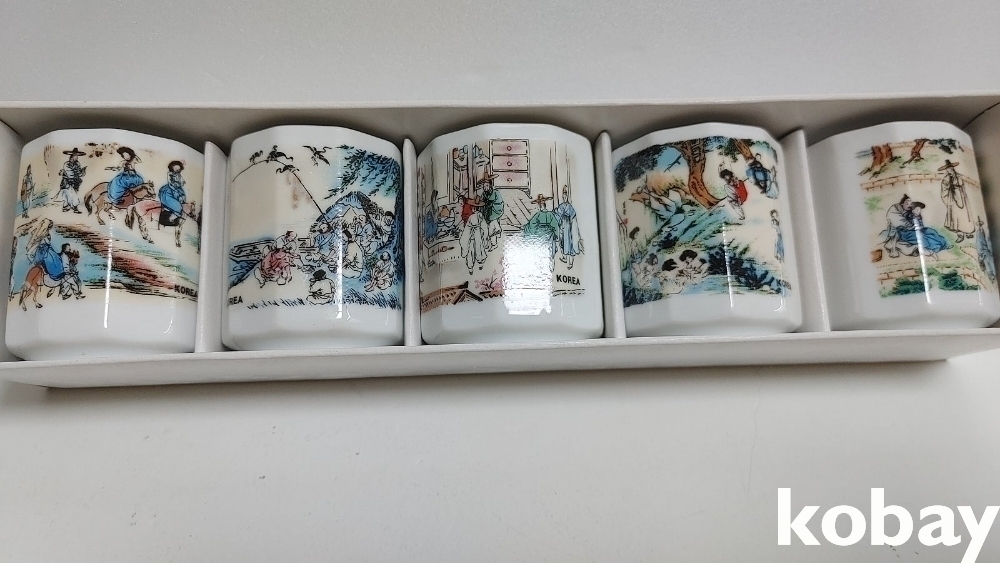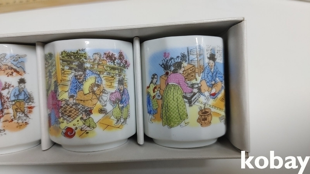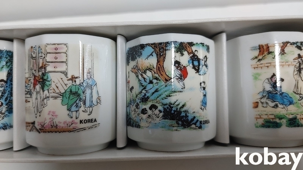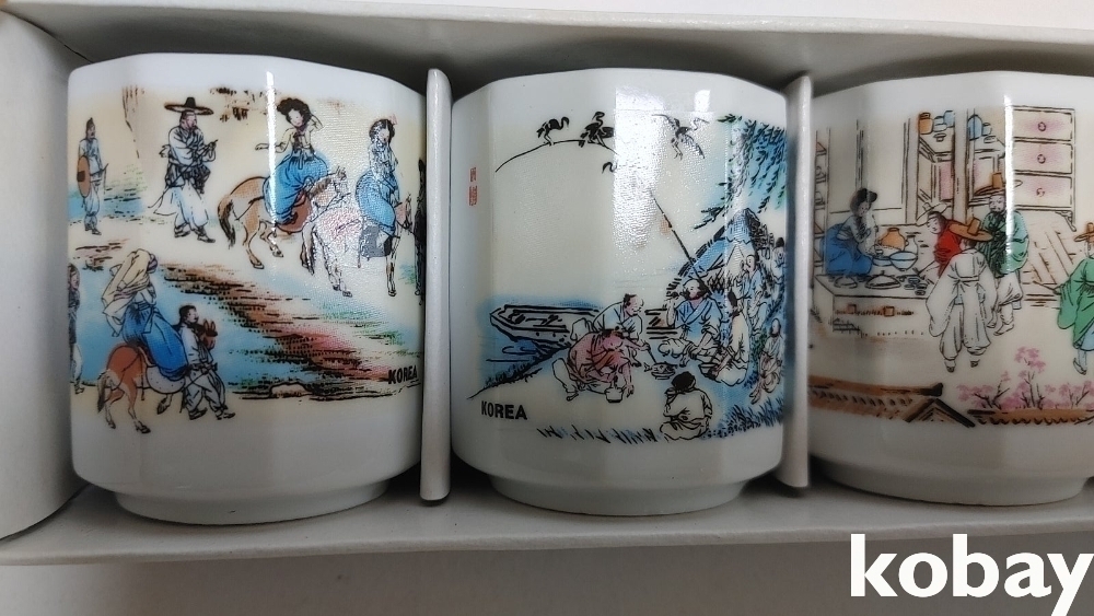 예전 민속그림이 이쁜 잔세트 입니다 2세트 신윤복등