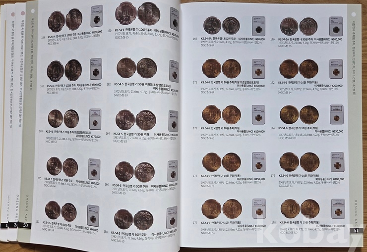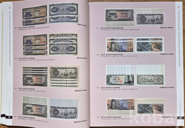 오성옥션 경매에 출품 각종 화폐가 (500~600여종 이상) 칼러 사진으로  잘 정돈되어 있습니다.