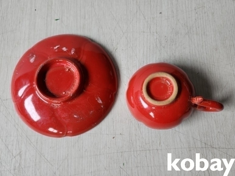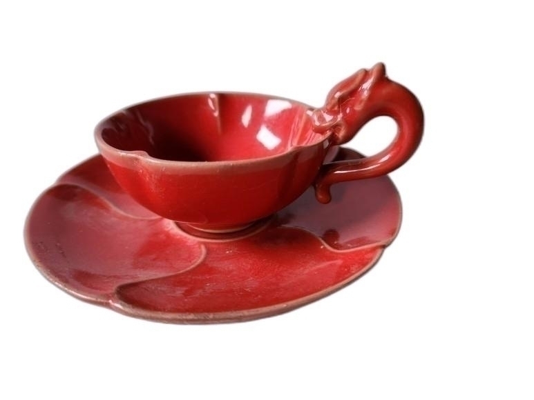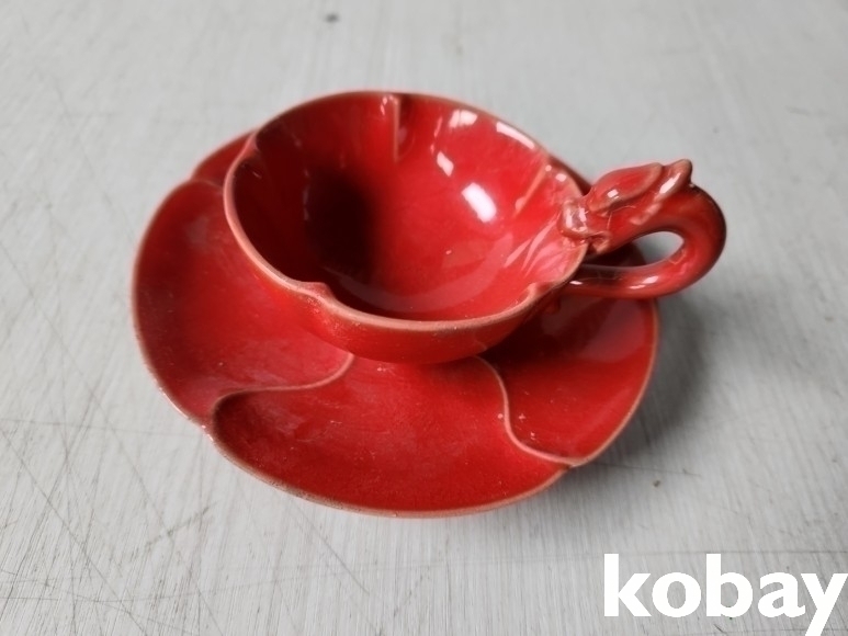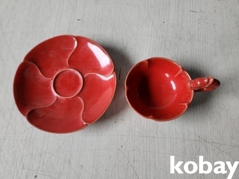 연 꽃잎 모양의 잔잔대 도자기 입니다.