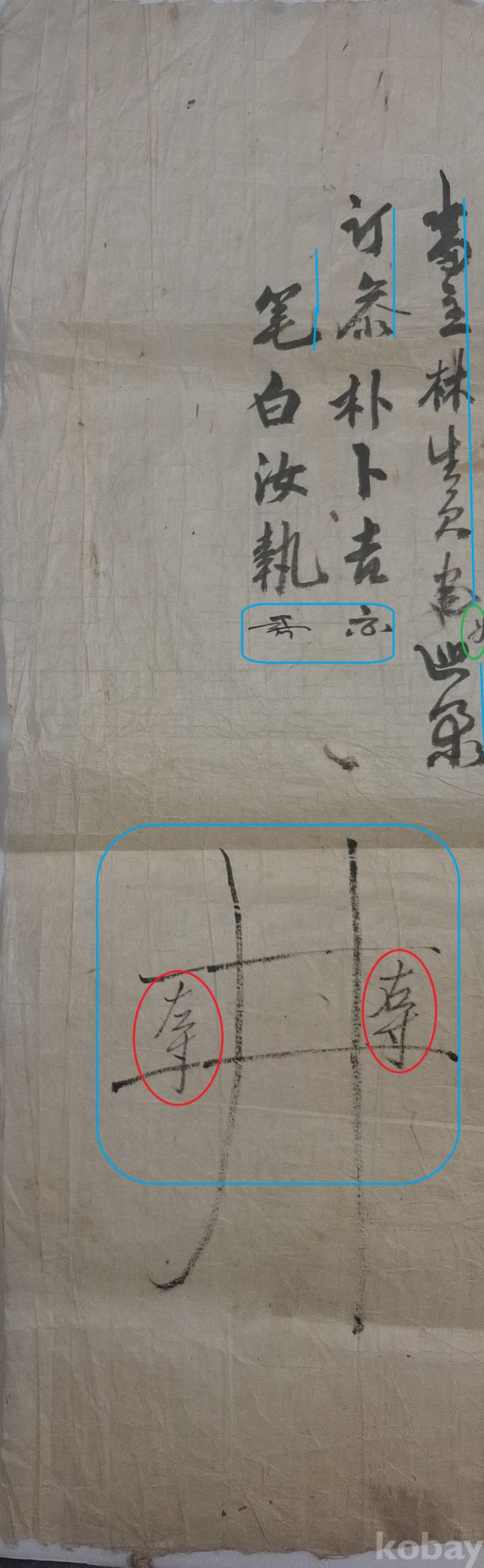 ◈ 수촌(手寸)은 조선 시대에 사용하던 노비의 수결로, 인장(印章) 대신하였다.
