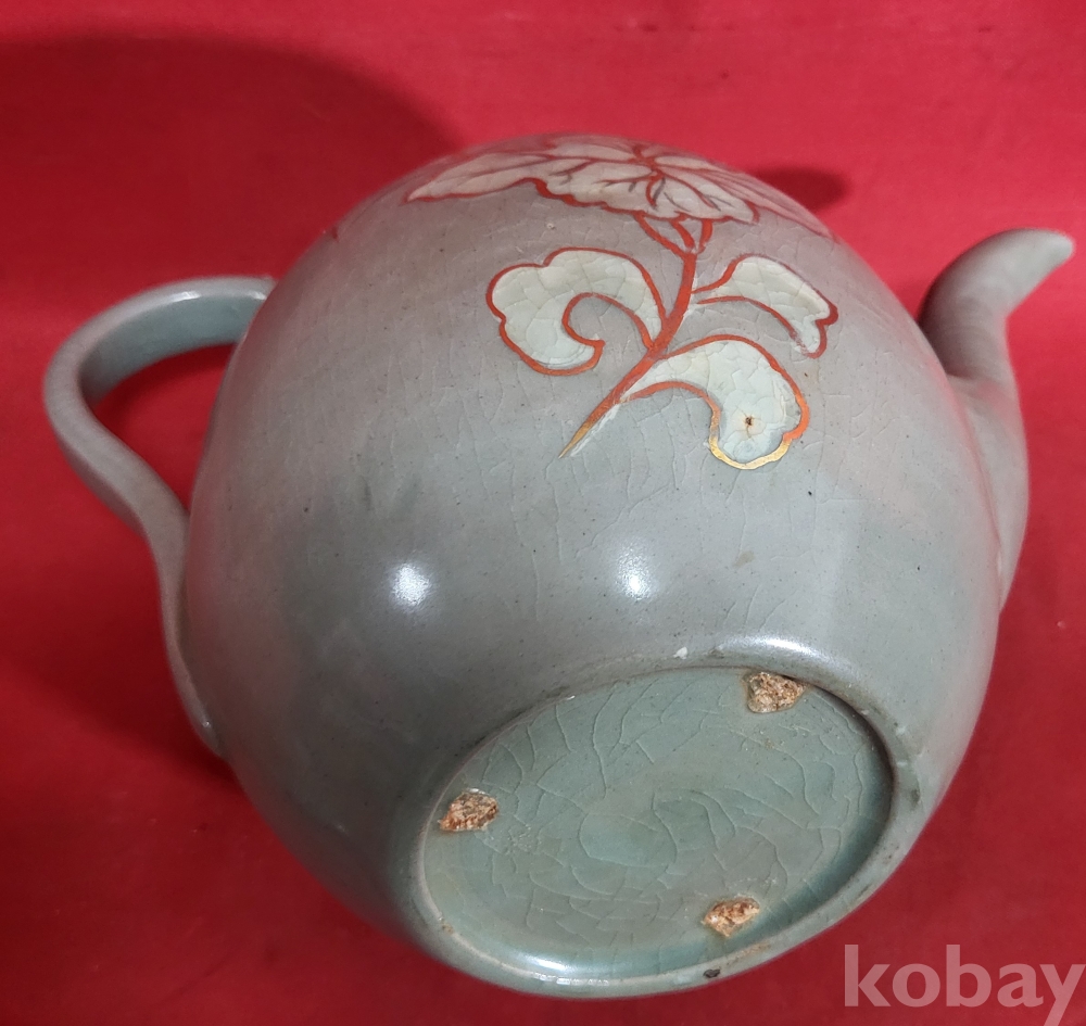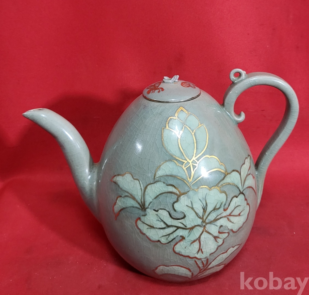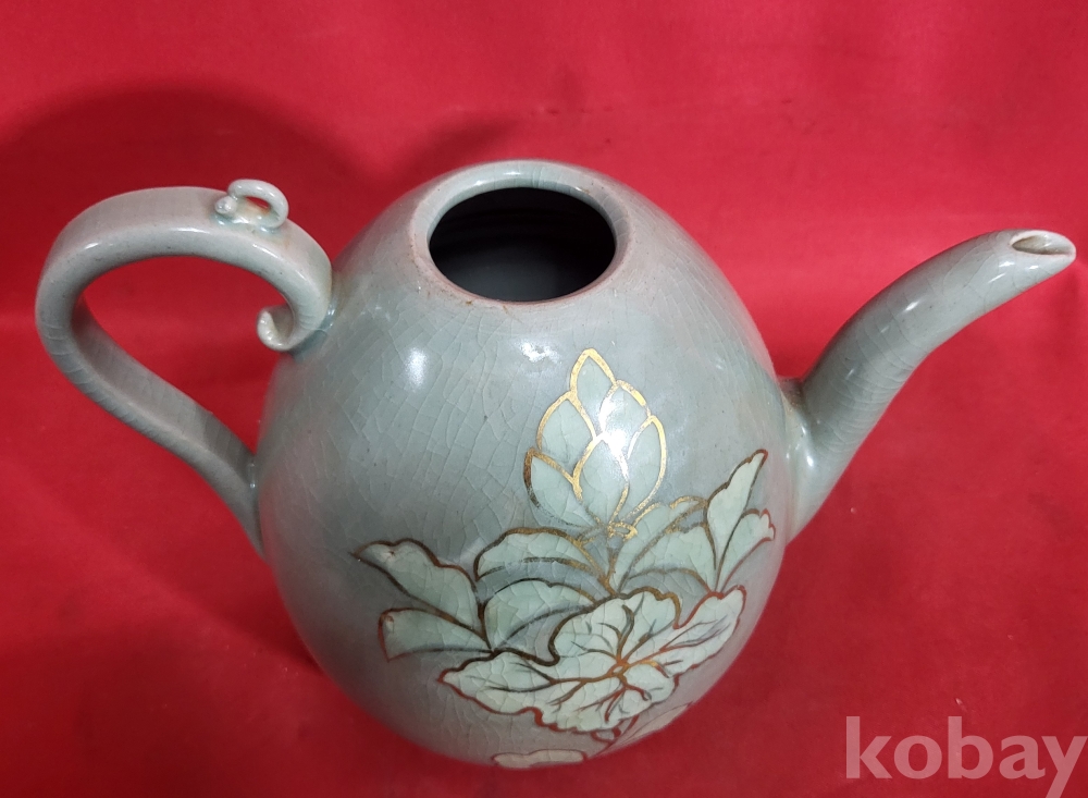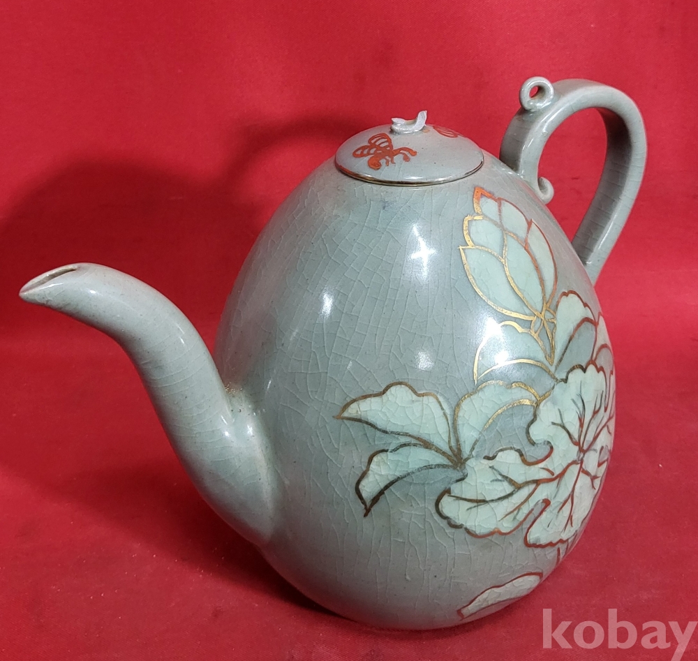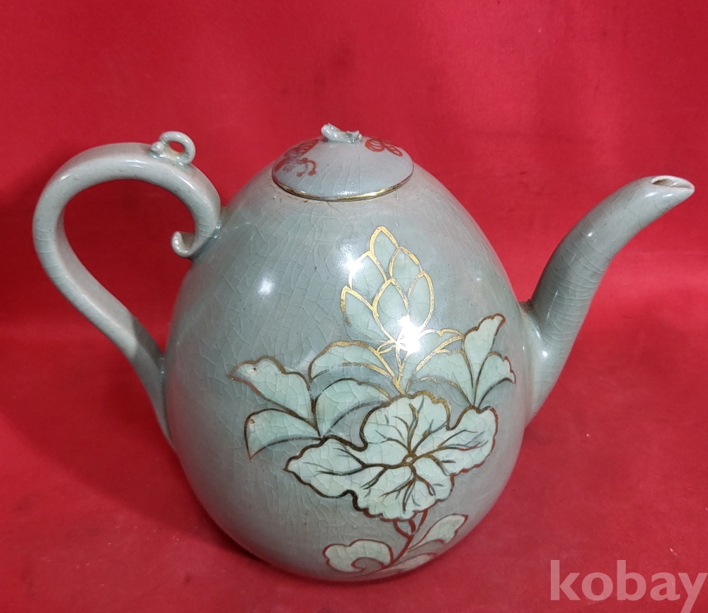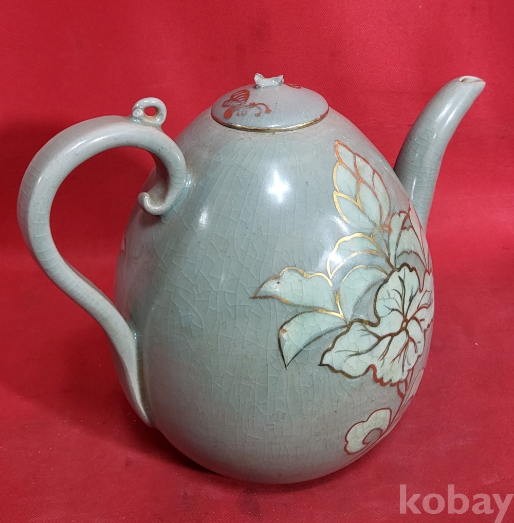 짱짱한 연대 갖춘 금채(金彩) 목단꽃(牧丹花) 문양 미감정 주전자입니다,