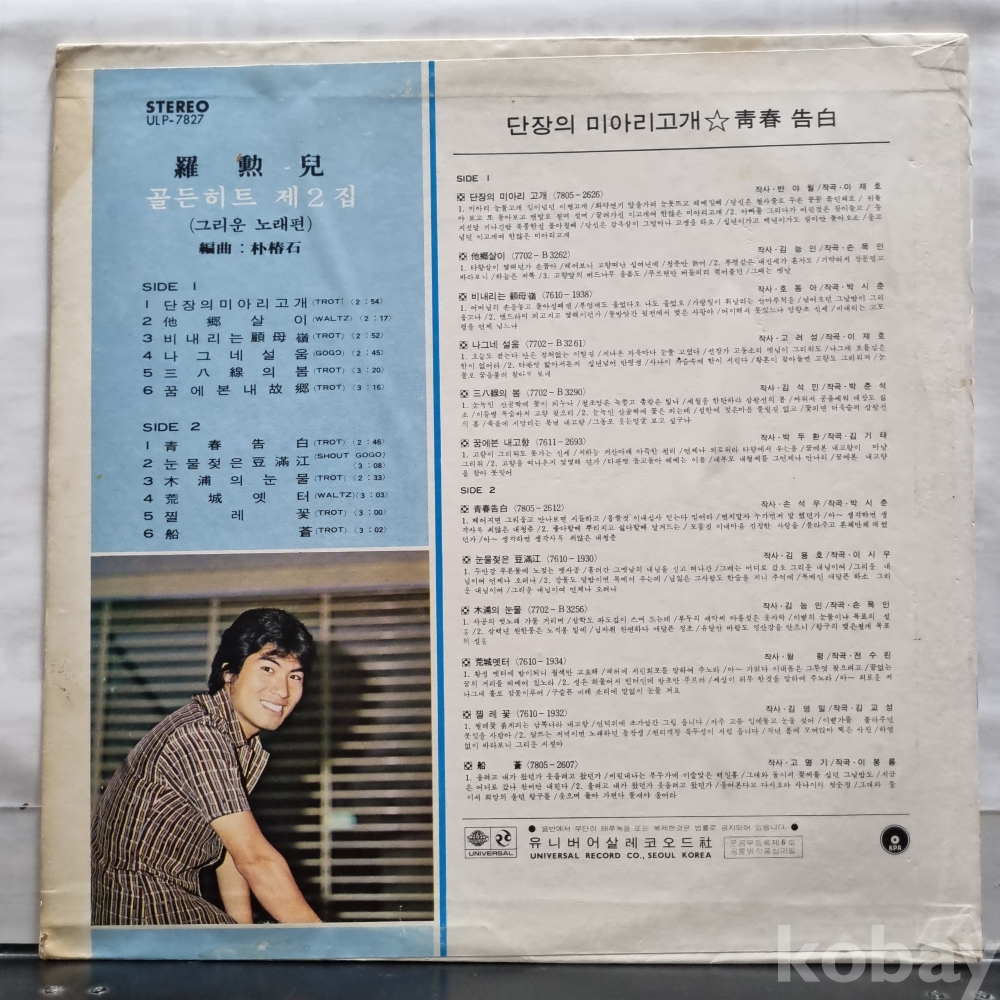 | 자켓상태 | EX : 약간의 마모, 모서리 찢김 존재 | 음반상태 | EX : 재생에 영향 없는 가벼운 기스 존재 | 발매정보 | 알수없음 | 가사지여부 | 무 |