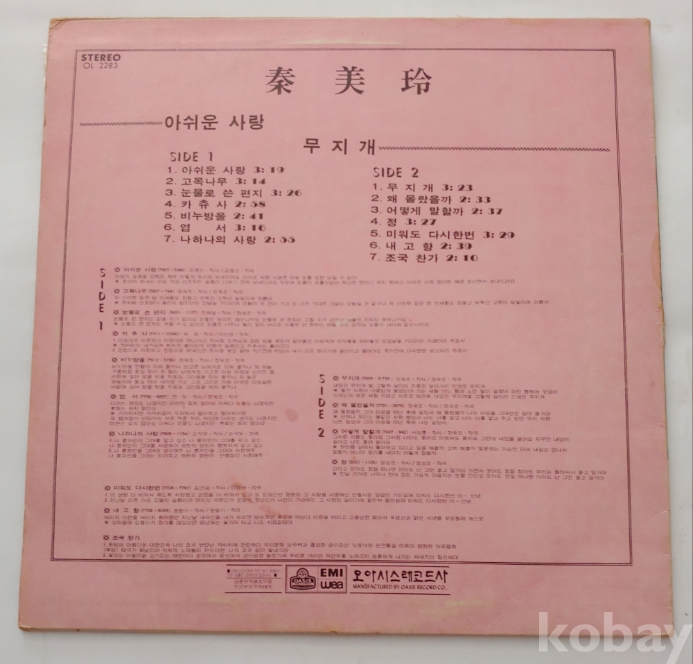 | 자켓상태 | EX : 약간의 마모, 모서리 찢김 존재 | 음반상태 | EX : 재생에 영향 없는 가벼운 기스 존재 | 발매정보 | 초반 | 가사지여부 | 무 |