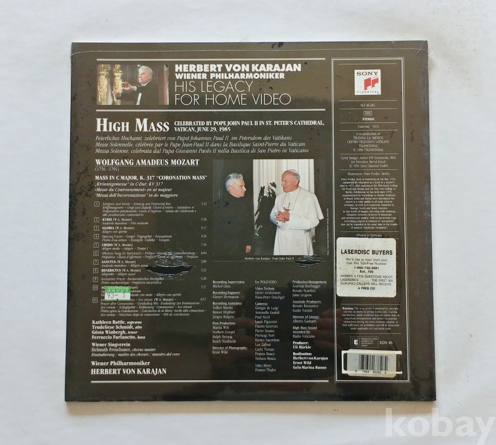 #326_모짜르트 대관식 미사, 카라얀 지휘 LD, 독일반, 미개봉