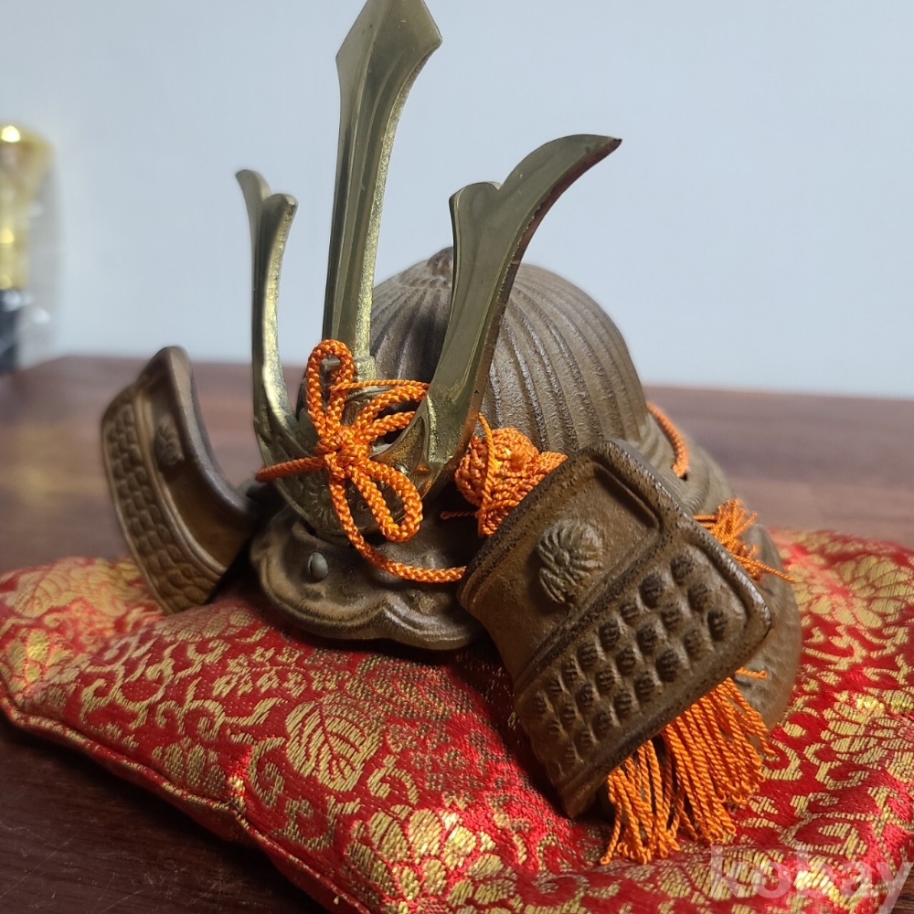 일본 사무라이의 마스코트 무쇠 투구입니다. 사이즈도 큰 편이고 무쇠라서 묵직합니다