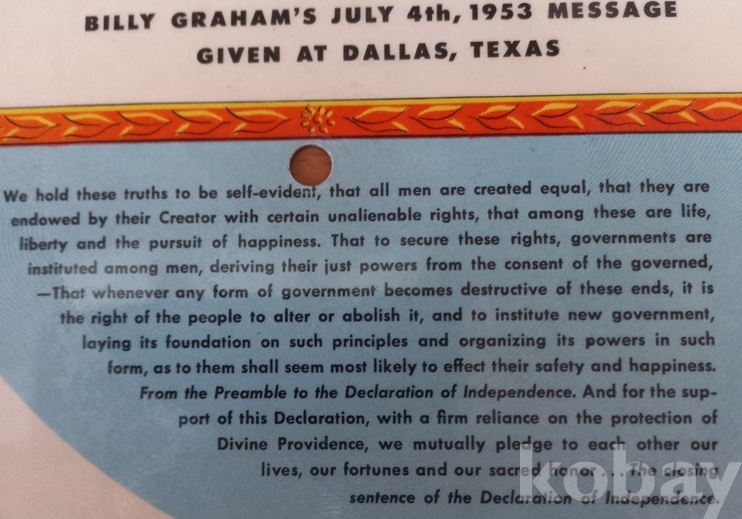 뒷면, LET FREEDOM RING(BILLY GRAHAM’S JULY 4th, 1953 MESSAGE GIVEN AT DALLAS, TEXAS.