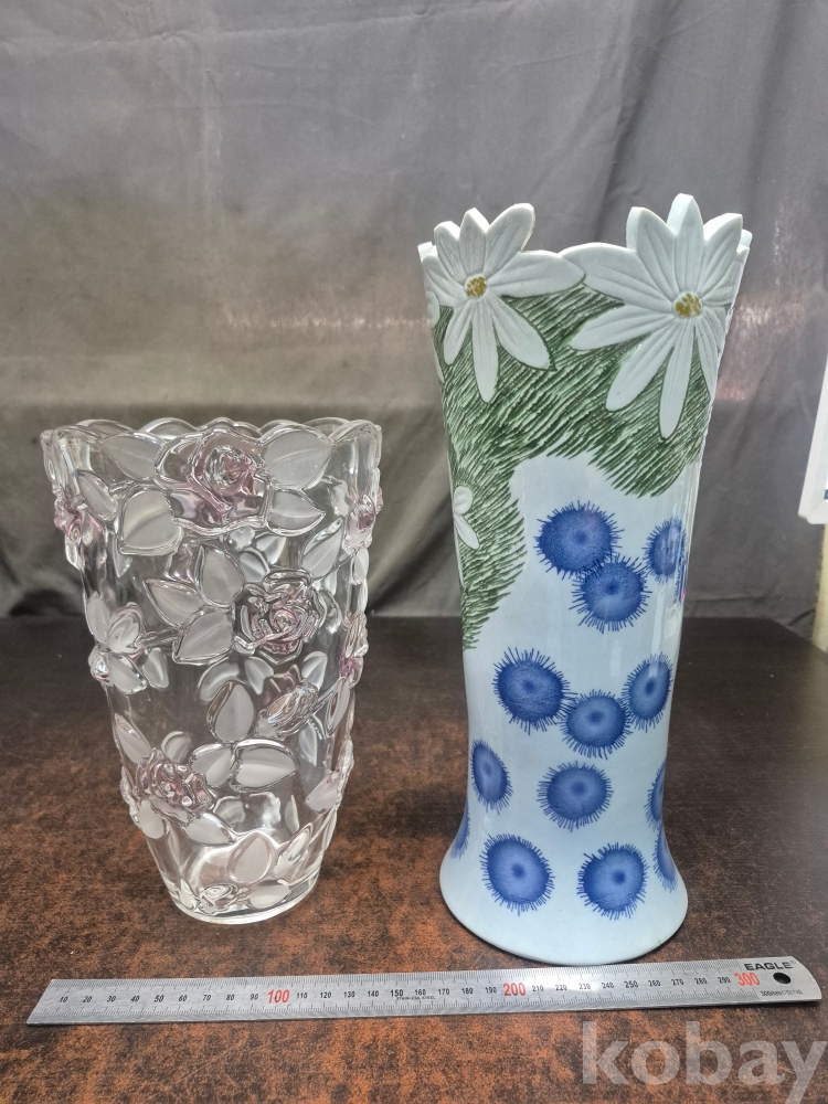 유리병 디자인 꽃병 1점 도자기 들국화 디자인 꽃병 1점 2점 일괄 14*14*32