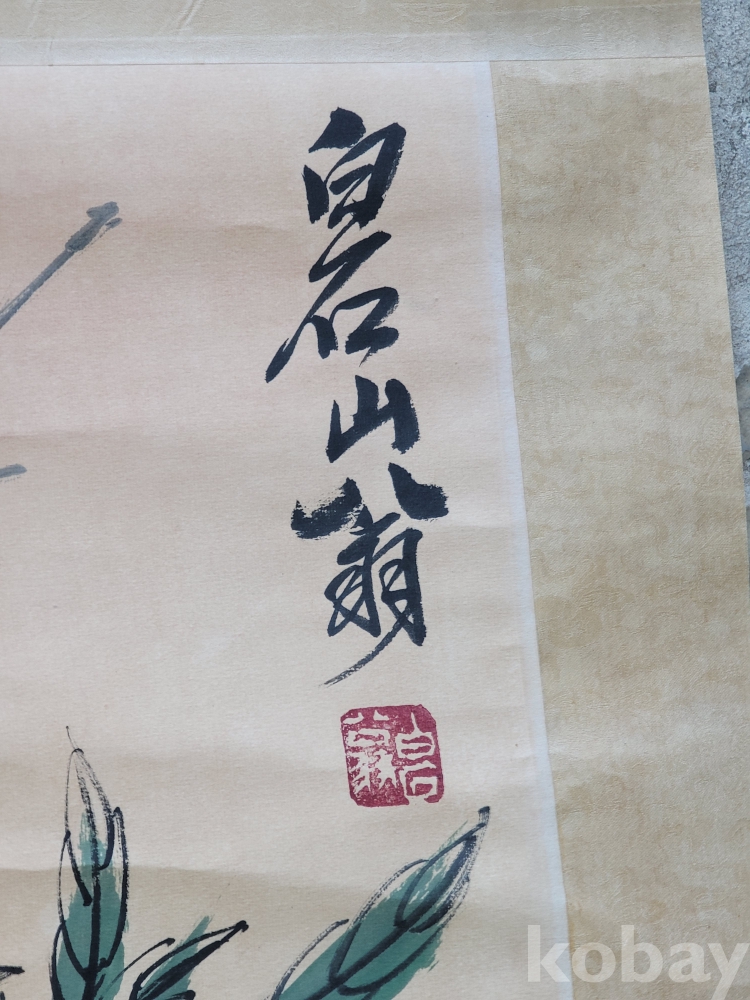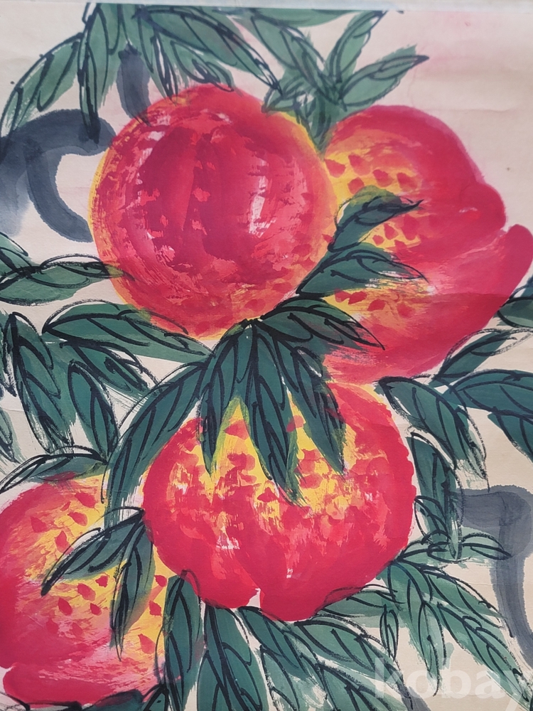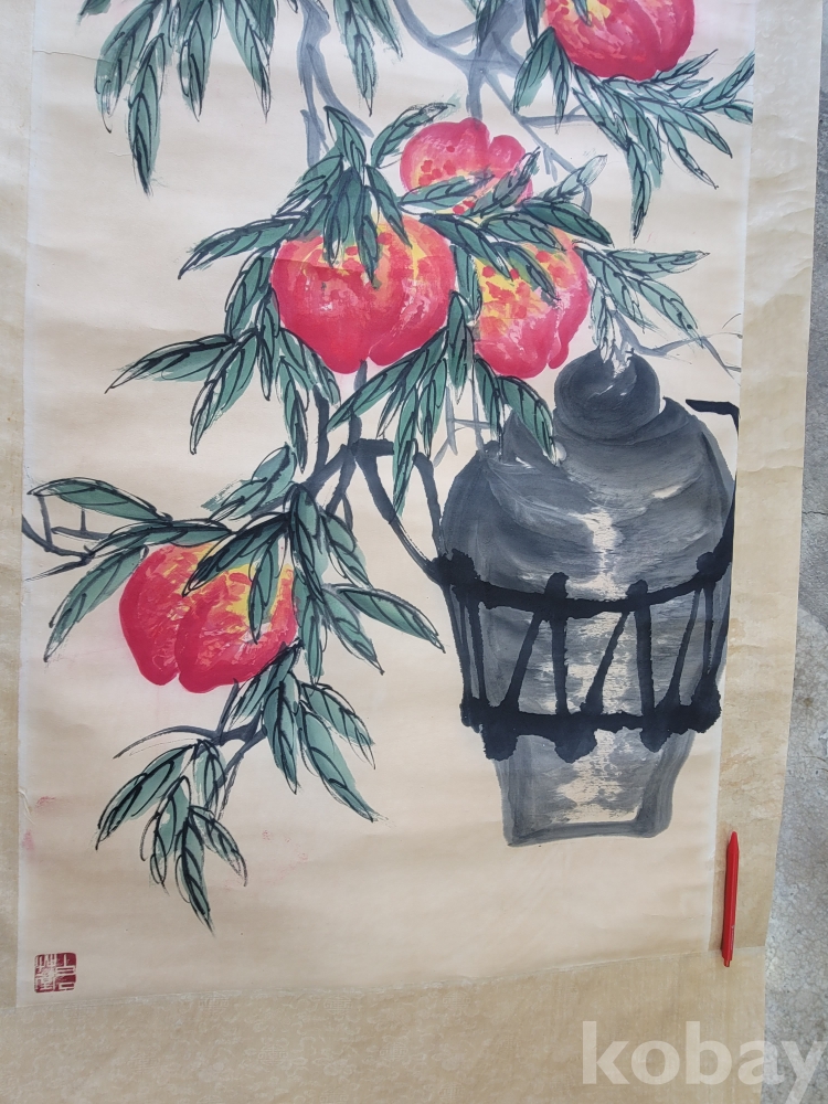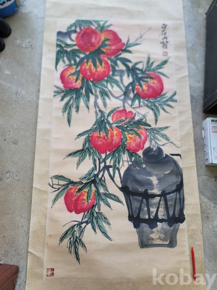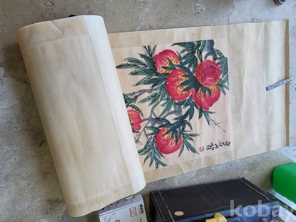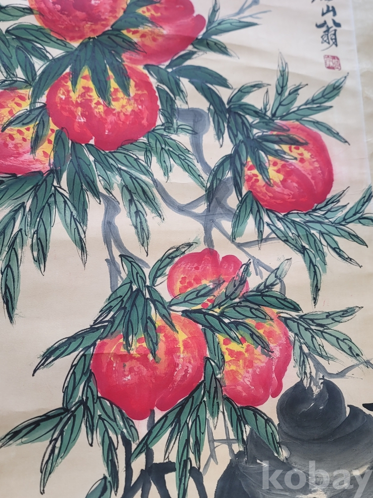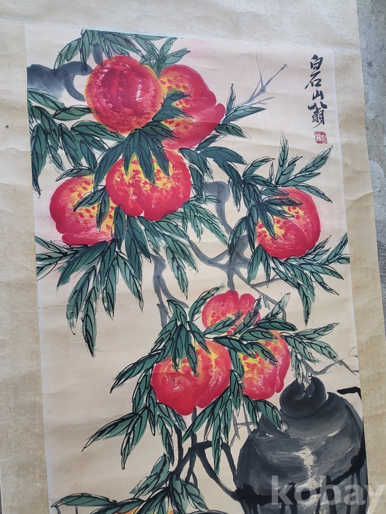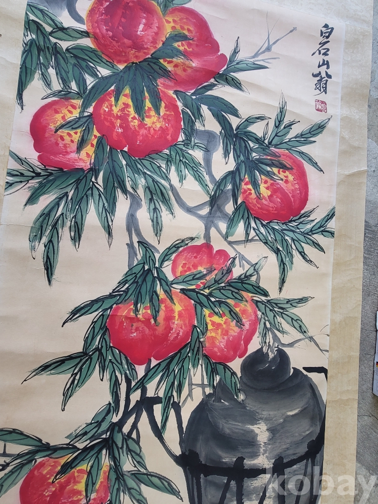 중국.. 백석 산옹 복숭아 그림 족자 / 도화 신선 부귀장수 유명 거장