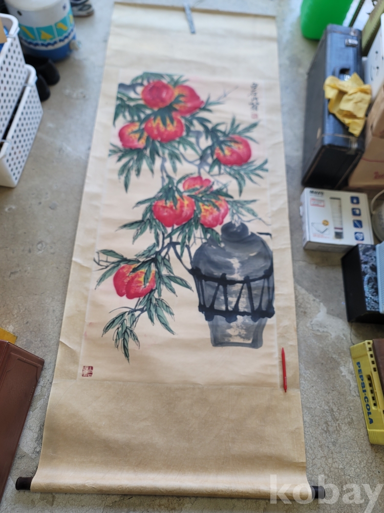 대단한 필력의 대형 복숭아 그림 족자 입니다.