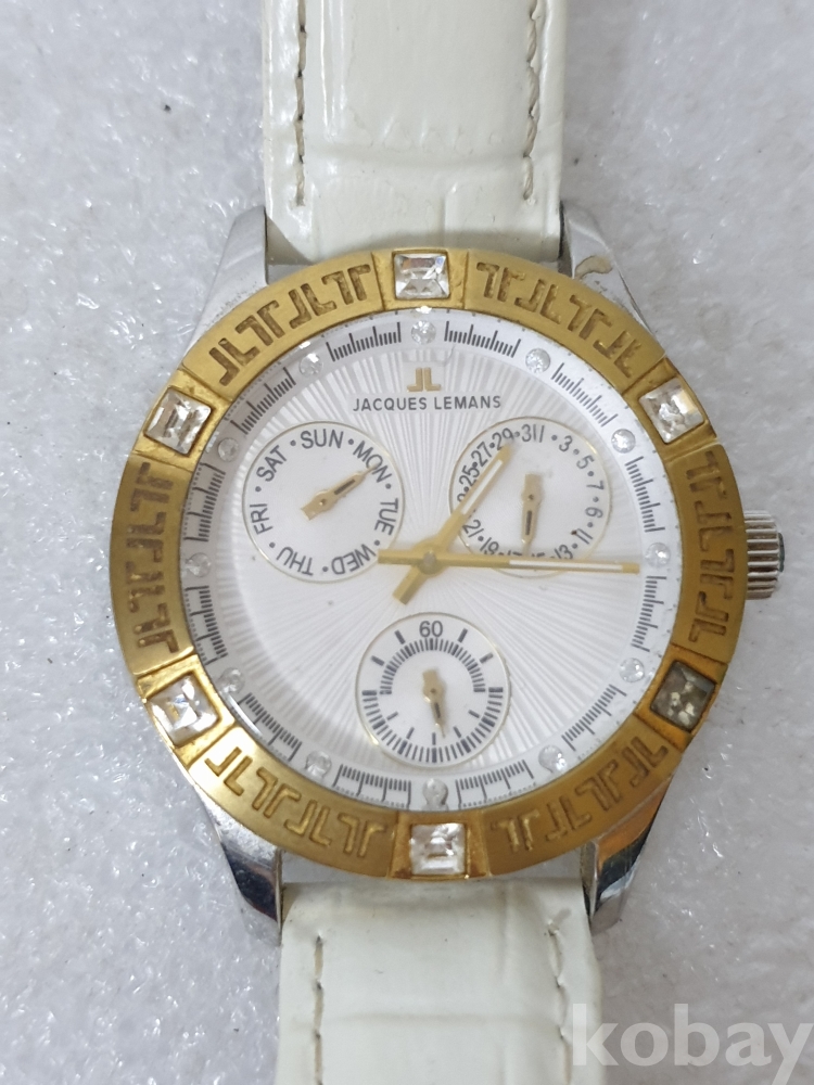 {천원경매} Y-4-1992 자끄르망 흰색줄 원형 손목시계 (작동확인안됨, 정품확인불가)
