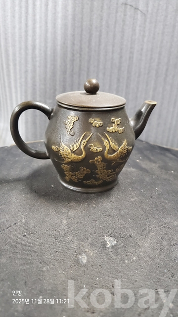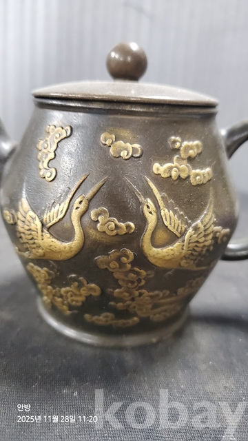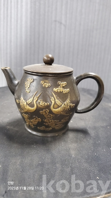 a-10.무거운학문양청동찻주전자