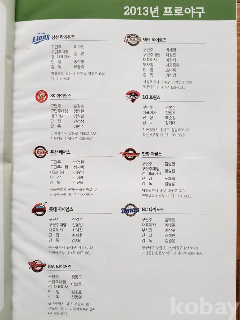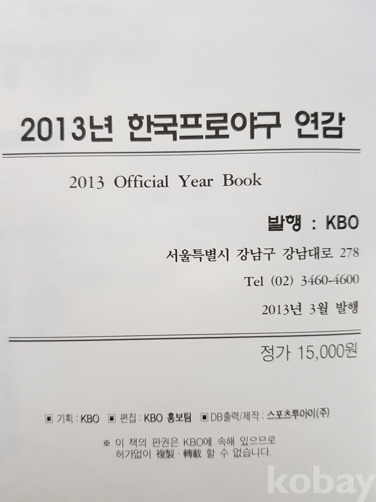 제목: 2013 프로야구 연감