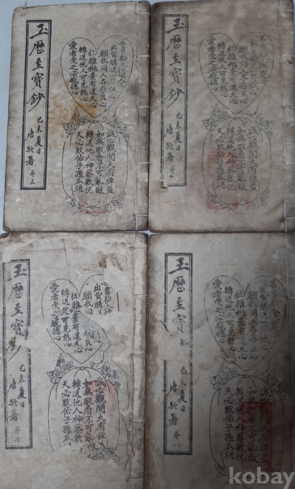1권 앞뒷 표지손상(도판 4장 포함), 2권 뒷표지 손상(전체가 도판), 3권 표지 일부 손상( 4장), 4권 앞표지 손상, 5권 표지완전, 6권 표지완전, 7권 표지 일부 손상, 8권 표지 일부손상 낙서 낙장 없음, 구하기 어려운 도가선서로 스님, 무속인, 역술가등에게 구입 적극 추천물품, 반품불가, 반품시 반품비용 구매자부담조건 판매, 사이즈는 정확하지 않음