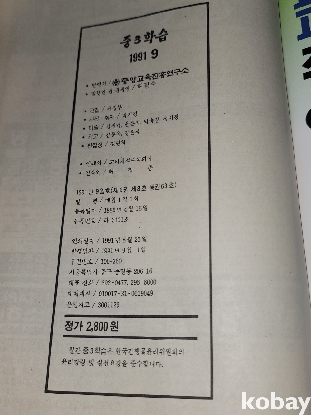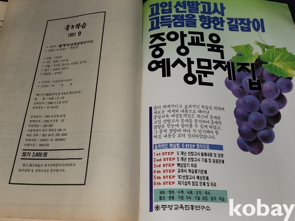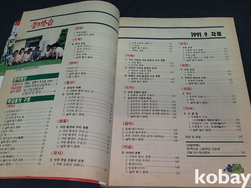 빈티지 세월 감이 느껴지는 1991년 "중3 학습" 문제집입니다.