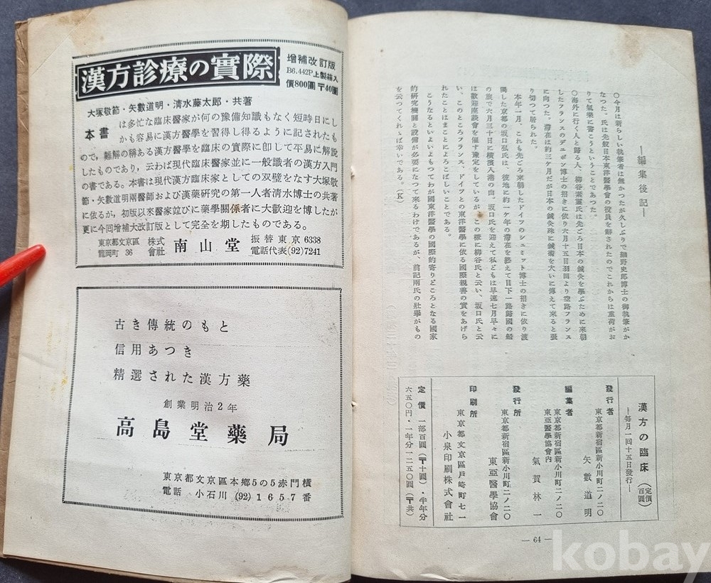 키워드: #고서 #한의학 #한방의임상 #야카즈도메이 #오츠카케이세츠 #1950년대 #의학잡지 #희귀본 #근대의학사