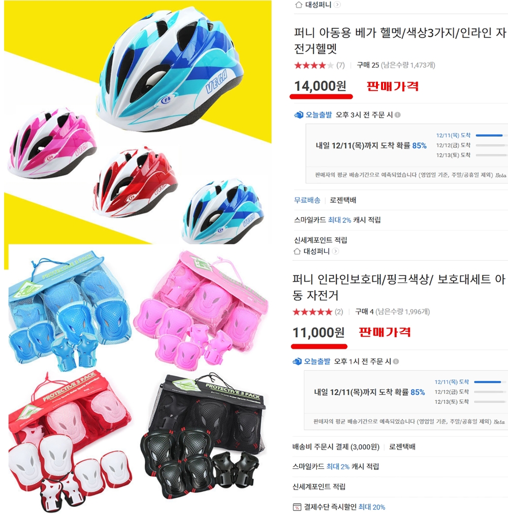 2) 자전거. 인라인 팔 다리 보호대 2/.최상품 새제품 수준임/사이즈: M