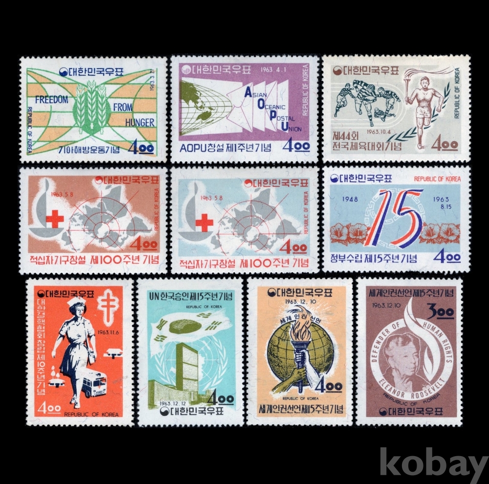 1963년 기념우표 10종, 힌지자국