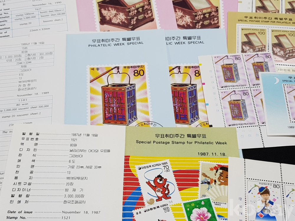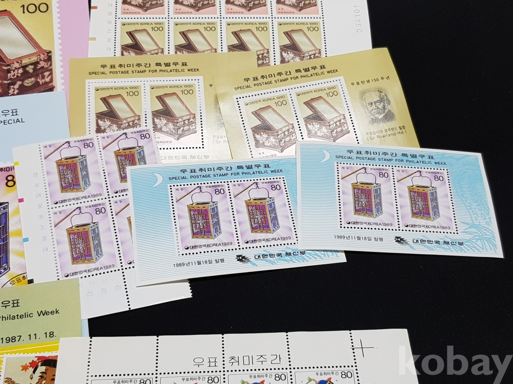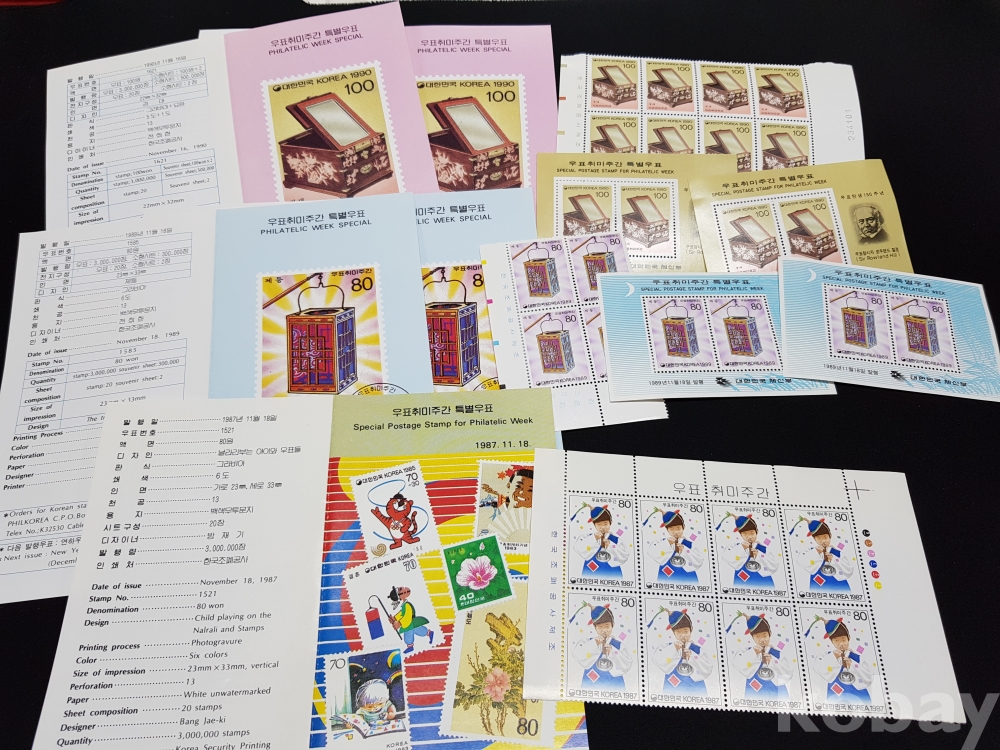- 1980~90년대 우표취미주간 특별우표 시트, 명판, 안내카드 등 모음