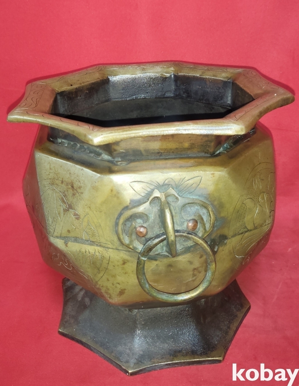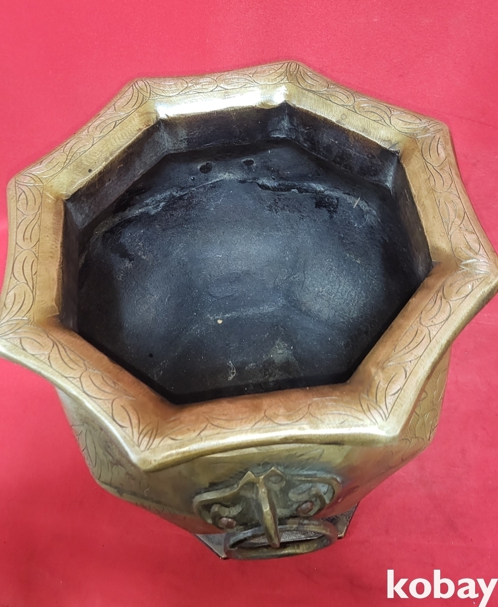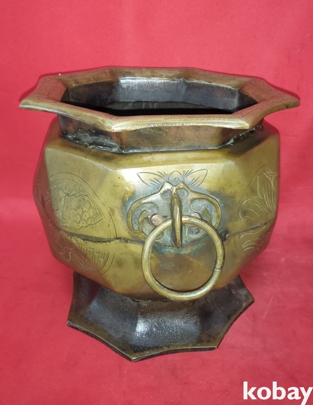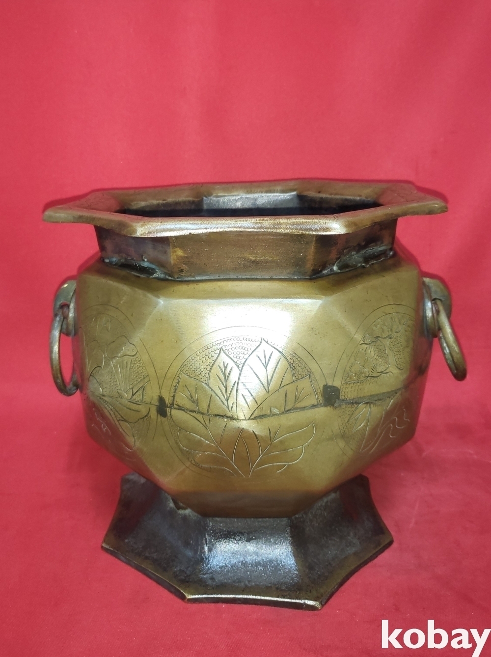 조선시대 청동으로 완성된 소나무.연잎 물결 연밥 문양 양이 8각42면 화로입니다,