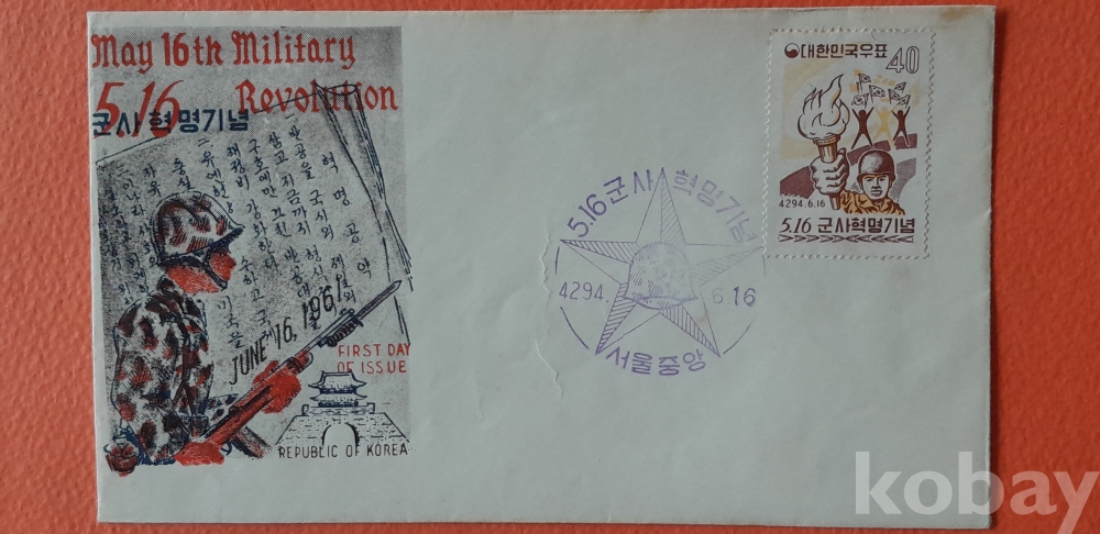 1961년 발행 5.16 군사혁명 기념 초일봉피 입니다.