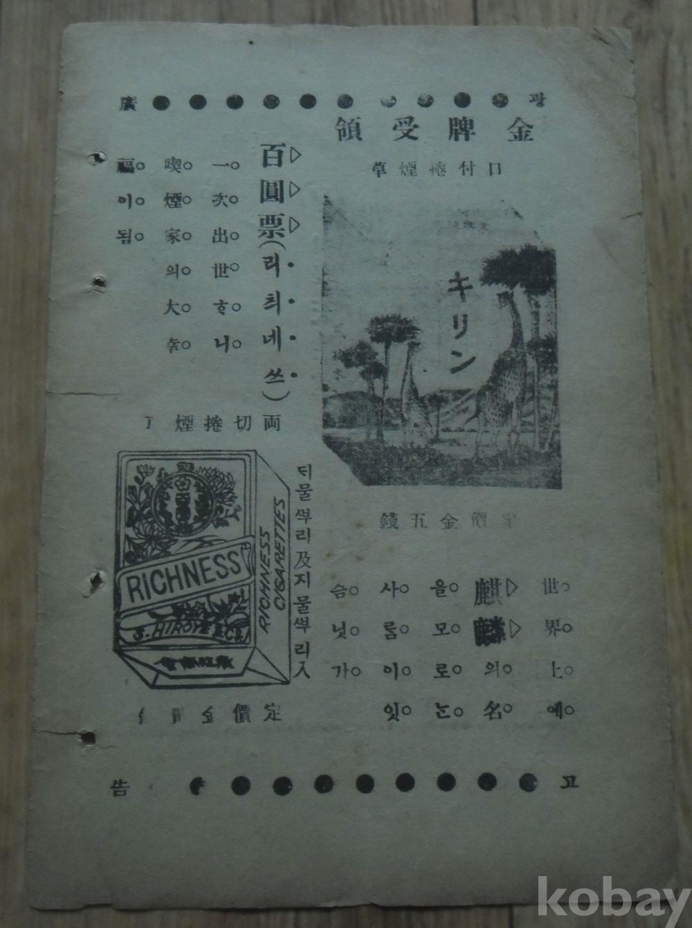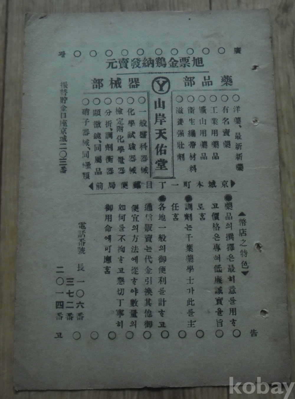 일제감점기 경향잡지속 광고 전단지(旭票金鷄納발매)