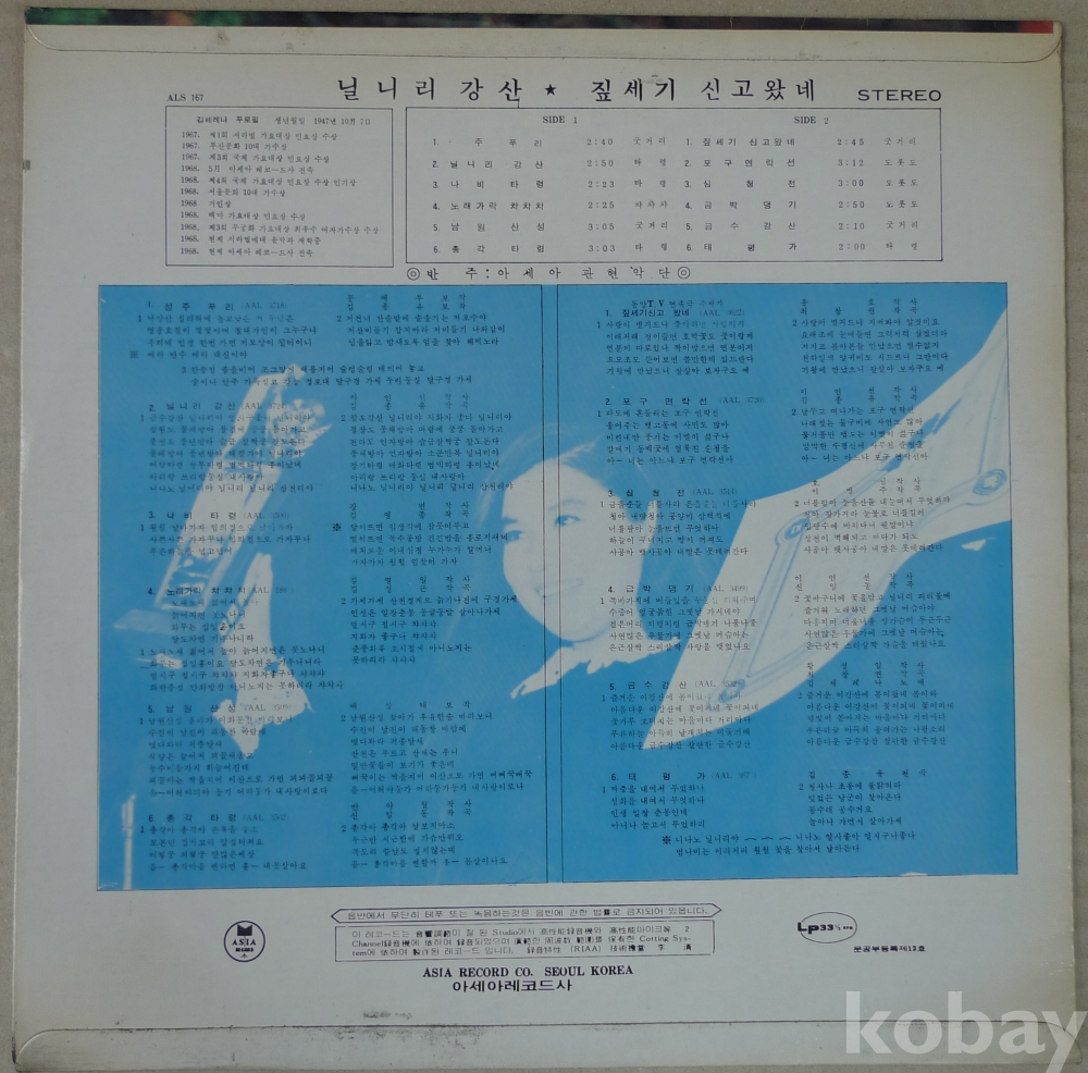 1972년 가수 김 세레나 스테레오 앵콜 힛트 앨범 음반 LP