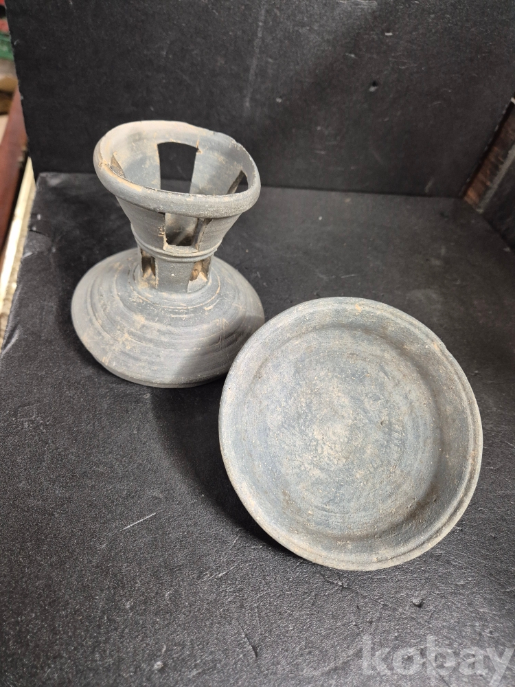 뚜껑이 있는 진품 신라토기 2단 굽다리 제기입니다.