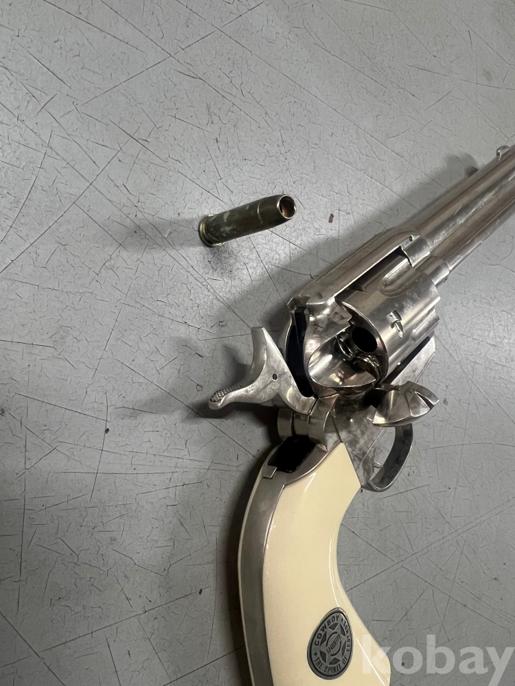 Bb탄을 탄피에 끼워서 발사하는 모형 권총입니다