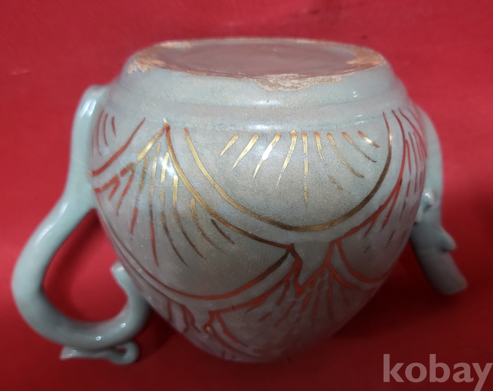 기물 전체에 특수 문양이 금채(金彩) 로 옷을입고 도안으로 시문된 명품(名品)입니다,