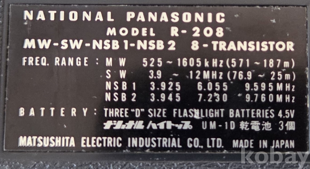 품 명 | 동작하는 NATIONAL PANASONIC 8TR MW/SW/NSB1/NSB2 4밴드 라디오 ***R-208*** |