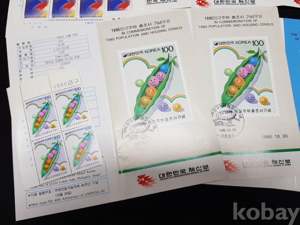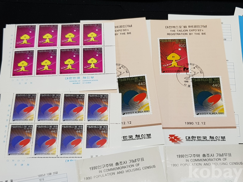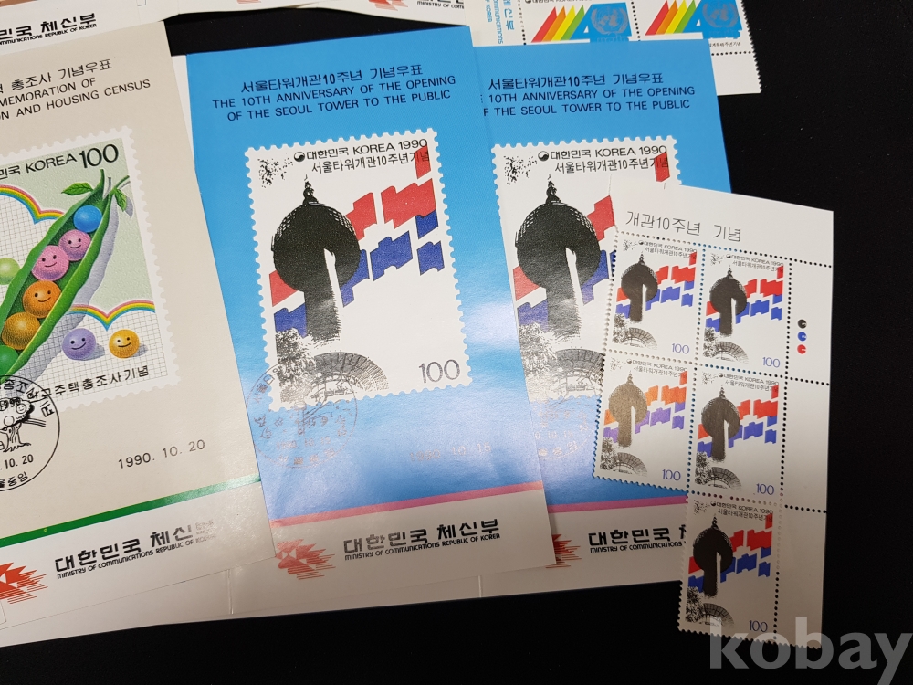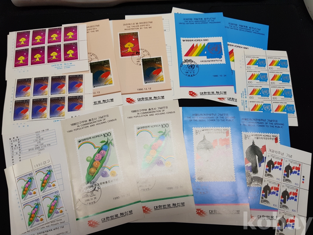 - 1990년 기념우표 시트, 명판, 안내카드 등 모음